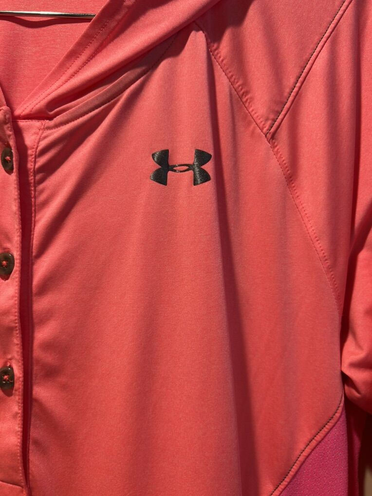 VenmoWomen’s size extra large fitted heap gear, 1/4 button up pink hoodie from under Armour. In great condition. No wear marks or holes. Clean smoke free home. Two zipper pockets on the side. Cash or Venmo. Porch pick up in Alpine.