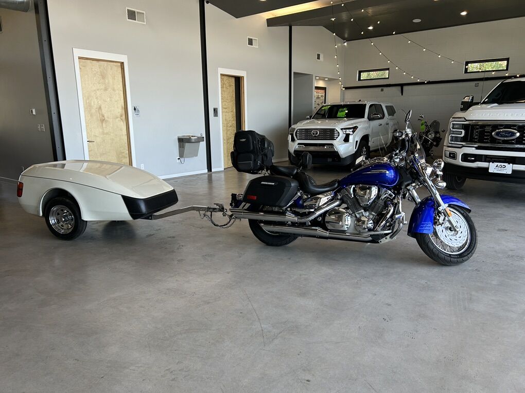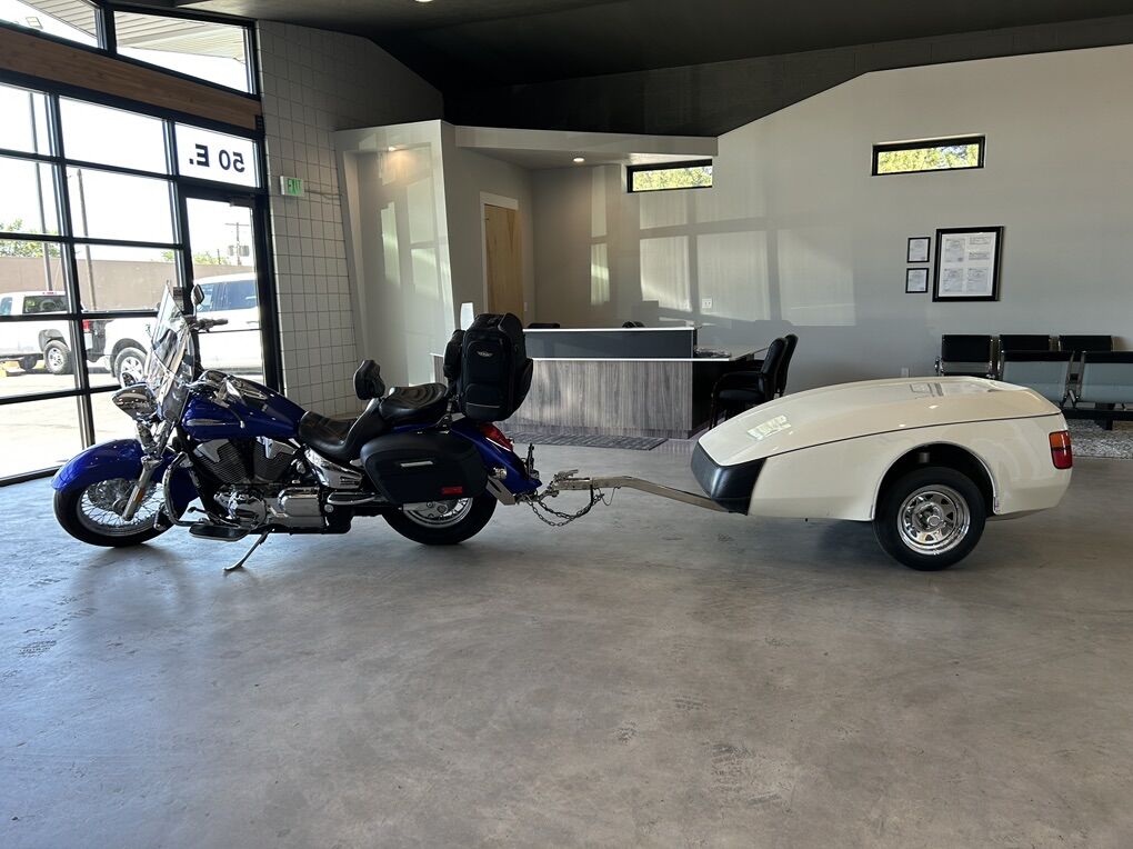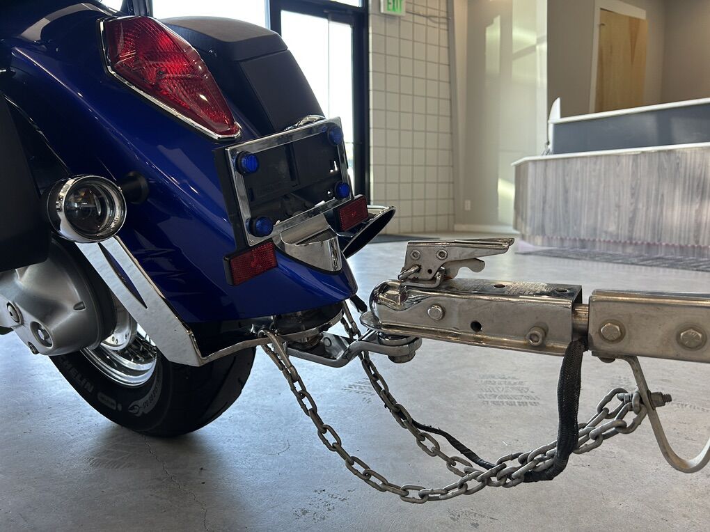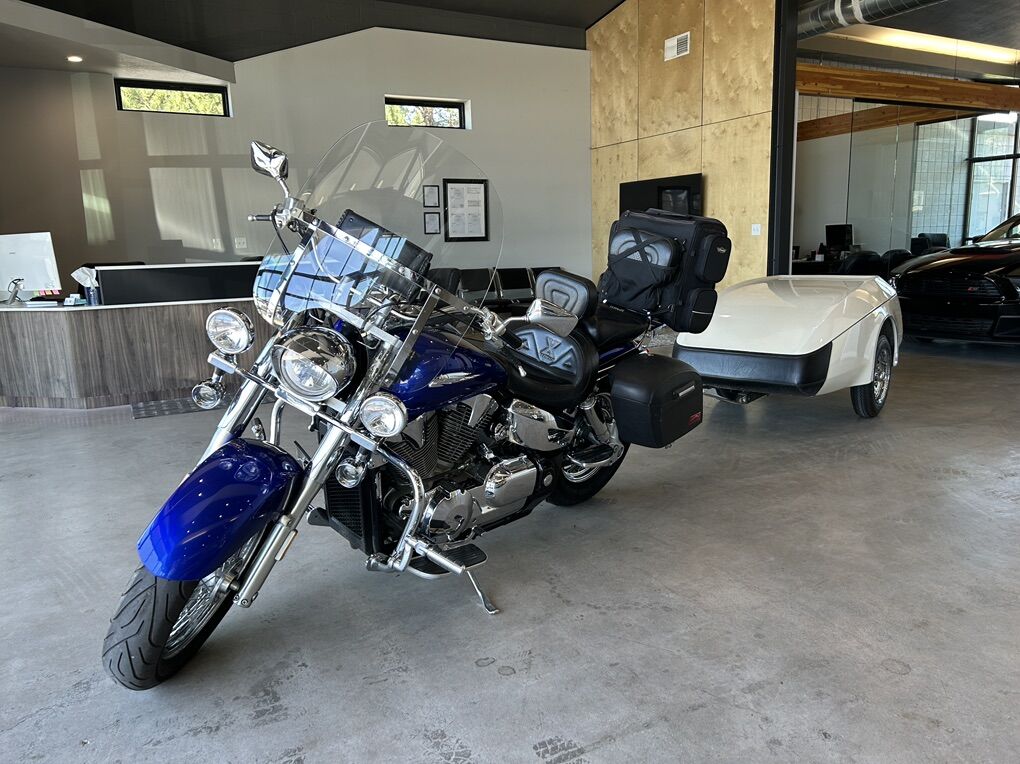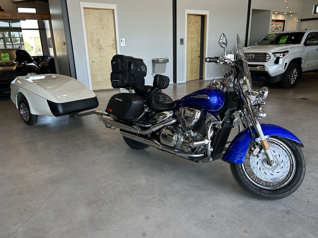 Absolutely Amazing Touring Road Bike. Meticulously maintained and cared for! Beautiful Deep Blue Color! Chrome everywhere makes it pop! Storage Galore! High back seat for rear passenger, Hard Trailers like this alone are selling for $3,000 or more! This is a high end carpeted trailer with a full spare! Such a sweet set up to make for an extremely comfortable ride. Ever dreamed of traveling across multiple states to see the mountain fall colors change to a fire red, orange, and yellow? It’s about to begin!! Maybe a coastal escape traveling to see all the small towns and cities of Washington, Oregon, and California? Or perhaps to the mountains dense with pines like Montana and Glacier National Park. Heck maybe you want to hit all the National and state parks and do so comfortably and cheap with camping gear? Now you can do it without breaking the bank! When we say this has been cared for we absolutely mean it. Probably more money has been spent on caring for, maintaining, and upgrading this bike with accessories than where the bike is priced.