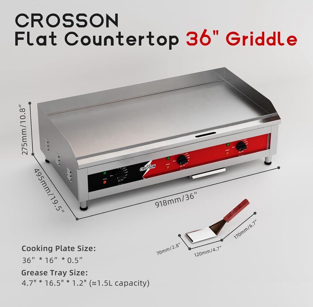 CROSSON 36x 16 Large Commercial Electric Countertop Griddle,Flat Top Heavy Duty Griddles with Non-Stick 1/2 Thick Iron Cooking Plate for Restaurant use-240V/6600W (EG-918C)