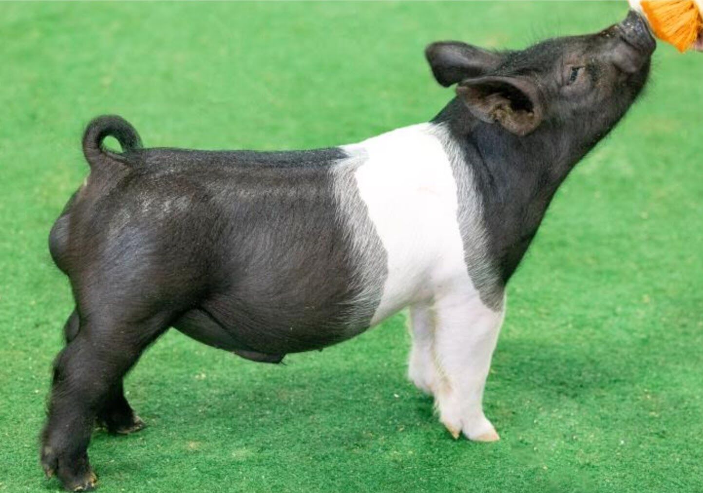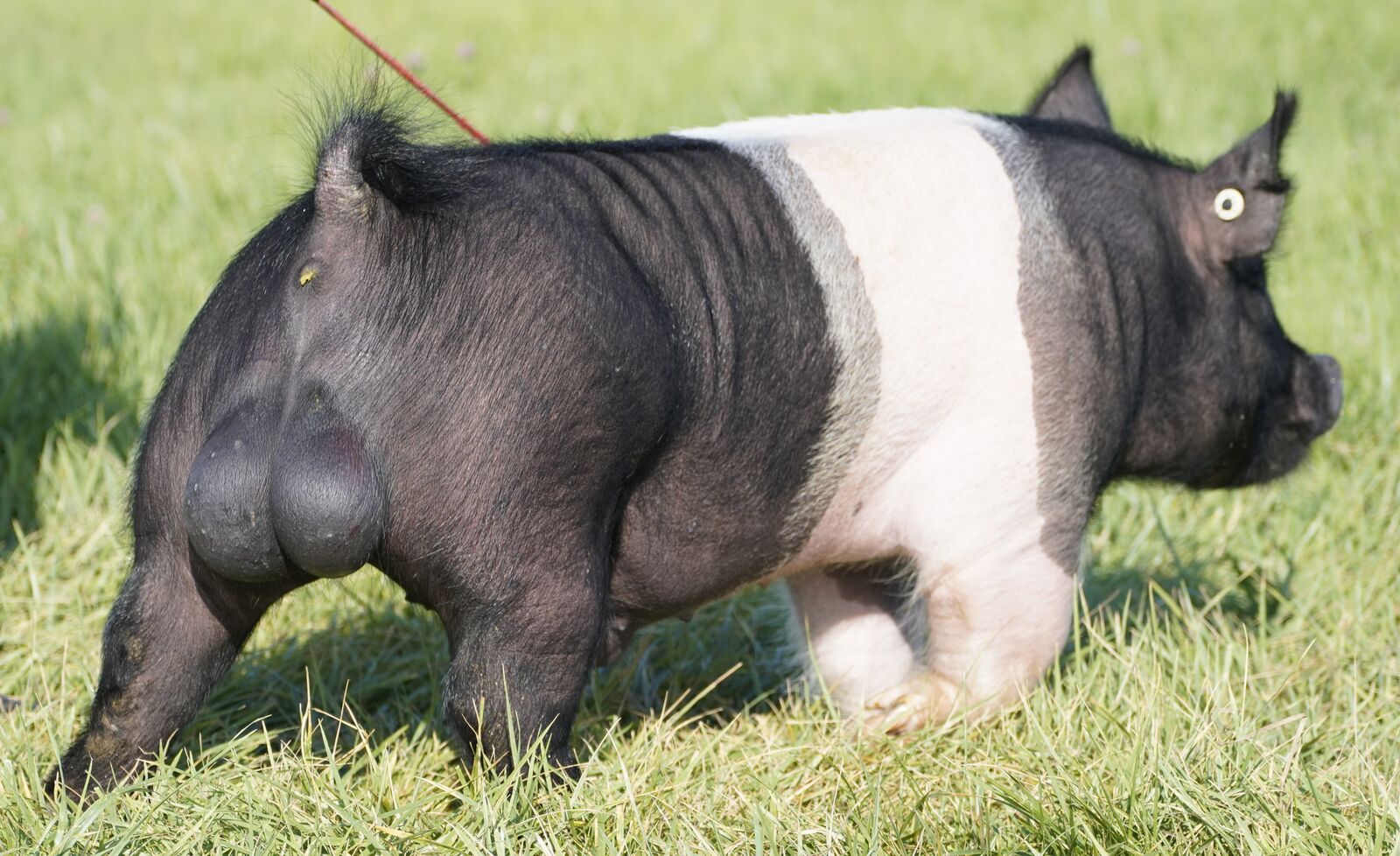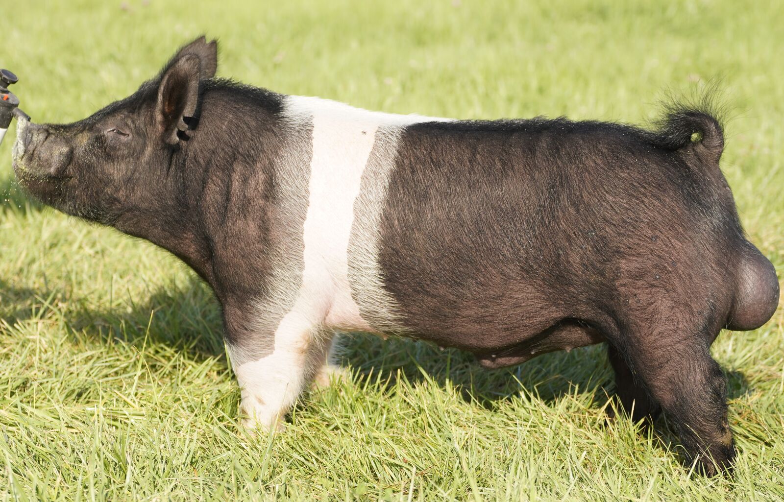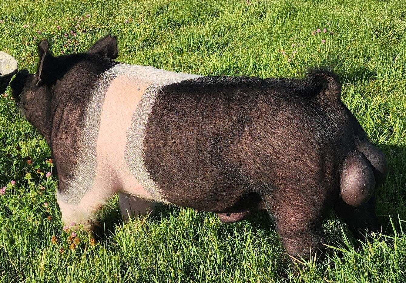 Chief is a very complete boar, he is just over a year old. His sire Breathtaker sold for $400k. Chief is square from the side and over the top, with a very thick top, deep bodied, he will add depth. He has correct feet and legs and moves very well.