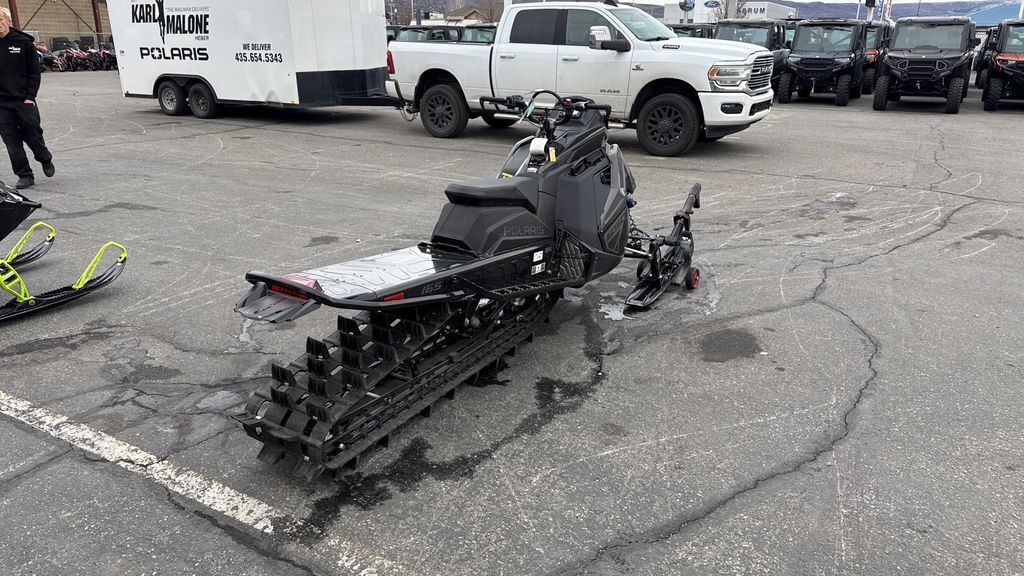 2025 Polaris® 850 RMK KHAOS 146 Shadow Gray / Gloss Black UNMATCHED FUN FACTOR IN ANY TERRAIN. The RMK Khaos delivers a wild child attitude, dynamic and agile performance. Features may include: THE BEST MOUNTAIN SLED JUST GOT BETTER - AND EVEN LIGHTER The RMK Khaos delivers transfer and traction for a wild ride. 2025 Boost and 9R RMK Khaos models are up to 6.5 lbs. lighter and have a redesigned throttle system, 1" lower seat, improved running board clean-out, and a lightweight headlight for improved connection and control to deliver the best RMK experience yet. Rider First Design. Effortless Control. The Matryx RMK platform includes a narrow seat, tank and console that provide improved rider connection to the sled while the narrow bodywork enables more agility and less drag in the snow. The new seat design and running boards further improves rider mobility on the sled while the new throttle system helps you feel connected to the sled on every ride. Float. And Fly. The RMK Khaos Rear Suspension features geometry that provides transfer and traction for light, playful handling, along with the best response and control in all riding zones. Available in 146, 155 and 165 lengths. Choose Your Power. Three engine choices from the Patriot Family to fit your riding style. Choose the legendary durability and relentless acceleration of the Patriot 850, or the Factory Mods… the ultra-responsive Patriot 9R or turbocharged Patriot Boost. PURPOSE-BUILT RIDE & HANDLING FOR ALL-MOUNTAIN When we build a sled, we build it to be the best sled for each unique riding style, not simply a different sticker or name. Every part is scrutinized to deliver what you need as a rider. Ultimate Control The RMK Matryx Slash platform features a next-level rider interface and slashed, tapered tunnel. Combined they deliver minimized drag and maximum control. Lightning-Fast Response. Puts The Power Down. QuickDrive is the lightest drive system in the industry and produces the lowest inertia for optimum response. Choose between the 325 Series 9 Track for instant traction and forward drive in deep snow or the 275 Series 8 track for versatility and traction in varying snow conditions. Precise Steering. Confidence Inspiring. The RMK React Suspension lets riders effortlessly initiate sidehills and experience less fatigue with the most predictable ride. It includes a 36"-38" stance, a sway bar designed for predictable handling, and forged a-arms and spindles optimized for strength and durability. Big Time Shocks for Big Time Terrain. Ultra-premium Walker Evans Hi-Lo Shocks are the best of the best in extreme mountain conditions. They feature remote reservoirs for increased oil capacity to ensure all-day performance and durability, along with high and low-speed compression adjustment to dial in the ride. INDUSTRY-LEADING TECHNOLOGY Polaris sleds lead the way in technology that enhances your ride. Technology built to help you plan rides, track your group, keep your sled cool in tough conditions, and see your way from dusk til dawn. Built to Stay Cool and Light. The shortened centralized cooling system on the RMK Matryx Slash platform features reduced dry weight and delivers improved cooling capability while reducing snow and ice build up. Reversible scratchers will help to keep your Patriot power running within spec.