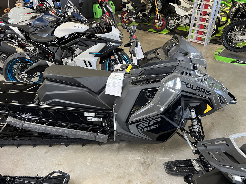 2025 Polaris® 850 RMK SP 155 Mirage Gray / Gloss BlackTHE EASIEST TO RIDE RMK YETFor riders who want an easy to ride, highly capable mountain sled with the durable and powerful 650 or 850 Patriot engines.Features may include:DEEP SNOW VERSATILITYThe Matryx platform and standard tunnel provides improved rider connection to the sled with a tapered, full-length tunnel and cooler for superior versatility in a wide variety of snow conditions.Rider-First Design. Effortless Control.The Matryx RMK platform is a backcountry rider's dream. The narrow seat, tank and console provide improved rider connection to the sled while the narrow bodywork enables more agility and less drag in the snow. Versatile in Varying Snow ConditionsThe full-length cooler and tapered tunnel offers added versatility for varying snow conditions whether it's a deep powder day or not.Choose Your PowerChoose the 850 Patriot for proven durability and relentless acceleration or the 650 Patriot for smooth power and response.CONTROLLABLE & EASY TO RIDEThe RMK SP suspension is calibrated to be easy to handle and comfortable for those looking to explore the backcountry, and the trails that take them there.Ride Confidently and ComfortablyThe RMK SP is a capable addition to the RMK family with performance features to ride confidently in deep powder.Capability in Varying Deep Snow ConditionsThe RMK SP features Polaris IFP shocks. These IFP coil-over shocks are purposefully calibrated for easy to ride in the backcountry and comfortable for the trail ride home.Proven Suspension ArchitectureThe RMK SP suspension features the same light, rigid, and durable suspension architecture as other RMK models. P32768