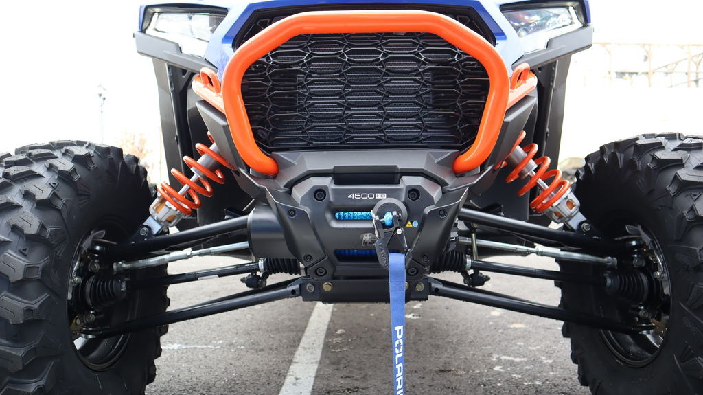 A full-coverage skid plate protects the powertrain, while a tubular front bumper adds rugged defense against trail hazards.