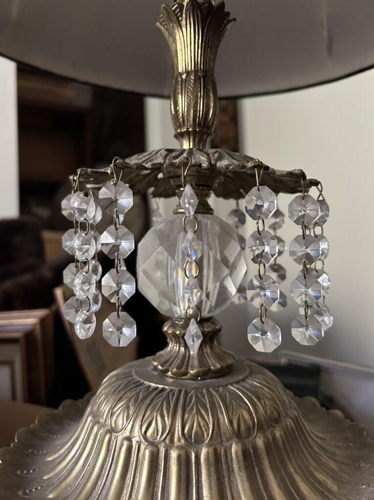 CashAppMid century Hollywood regency vintage Crystal & Brass Lamp antique beautiful table lamp
