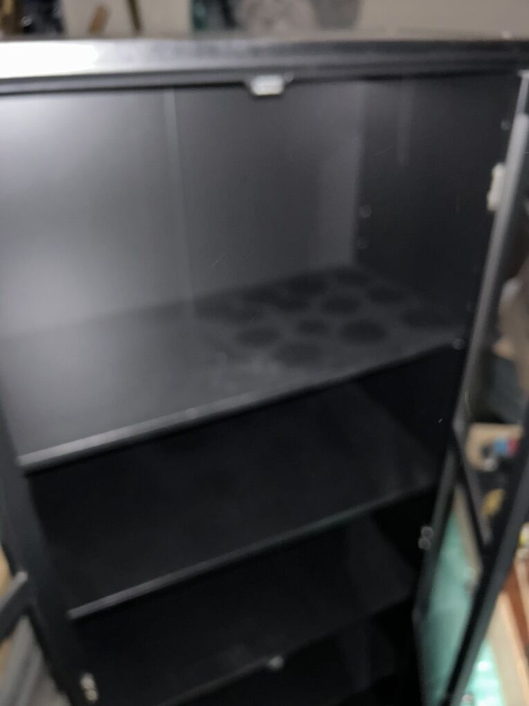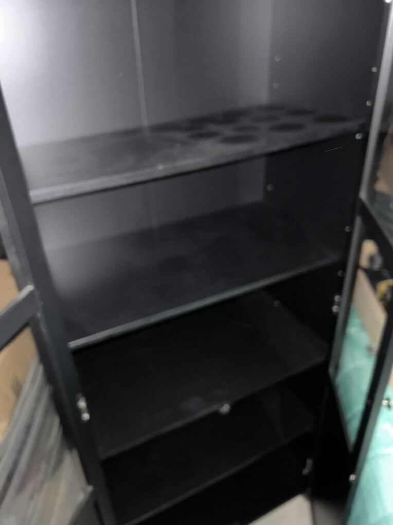 CashAppBlack Glass doored Cabninet with extra storage and shelving under the glass shelf’s. OBO