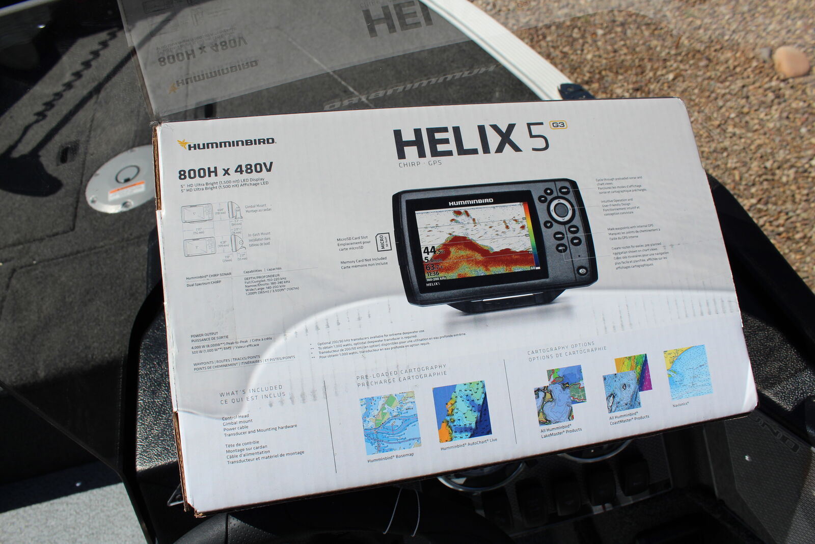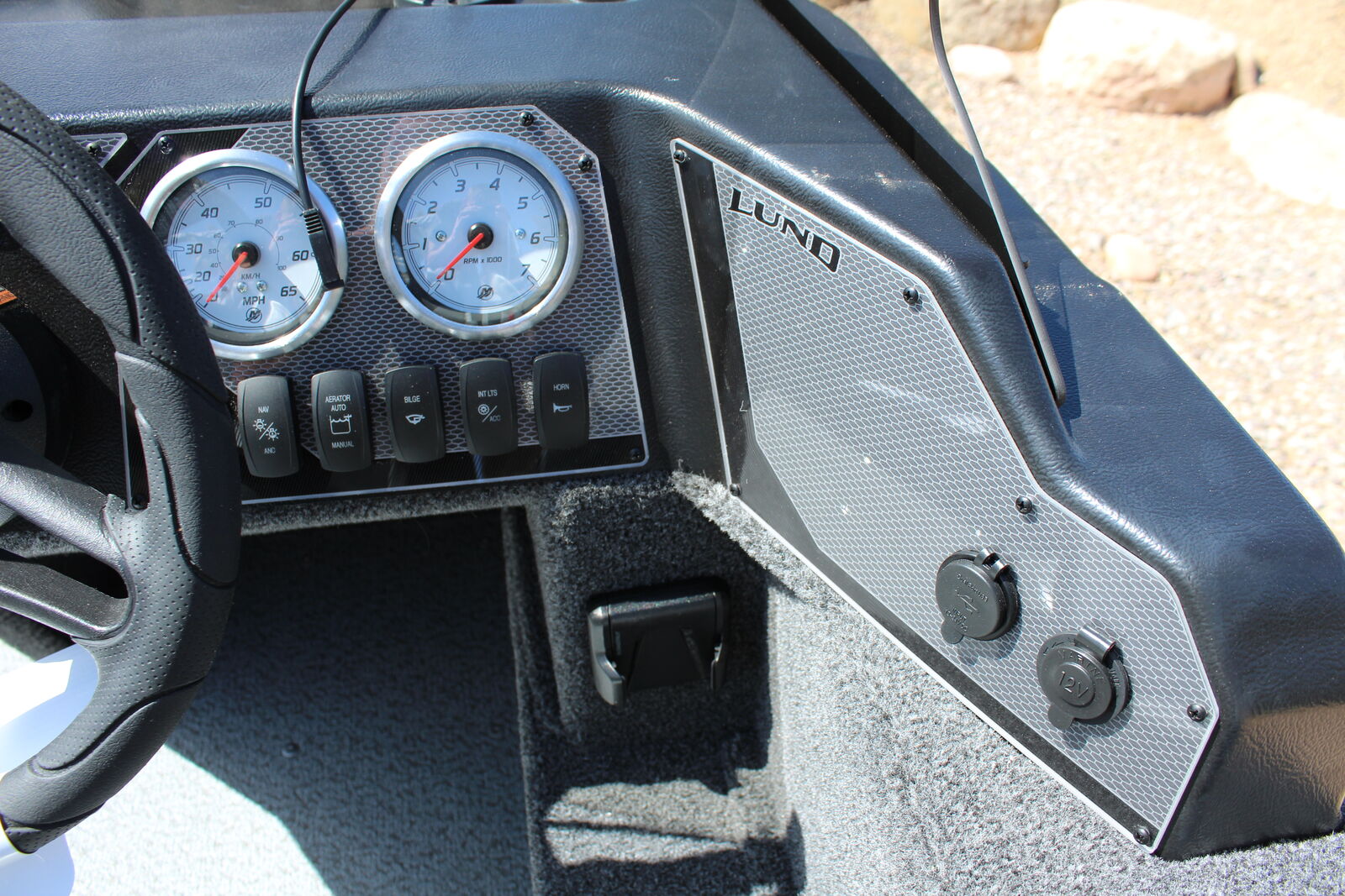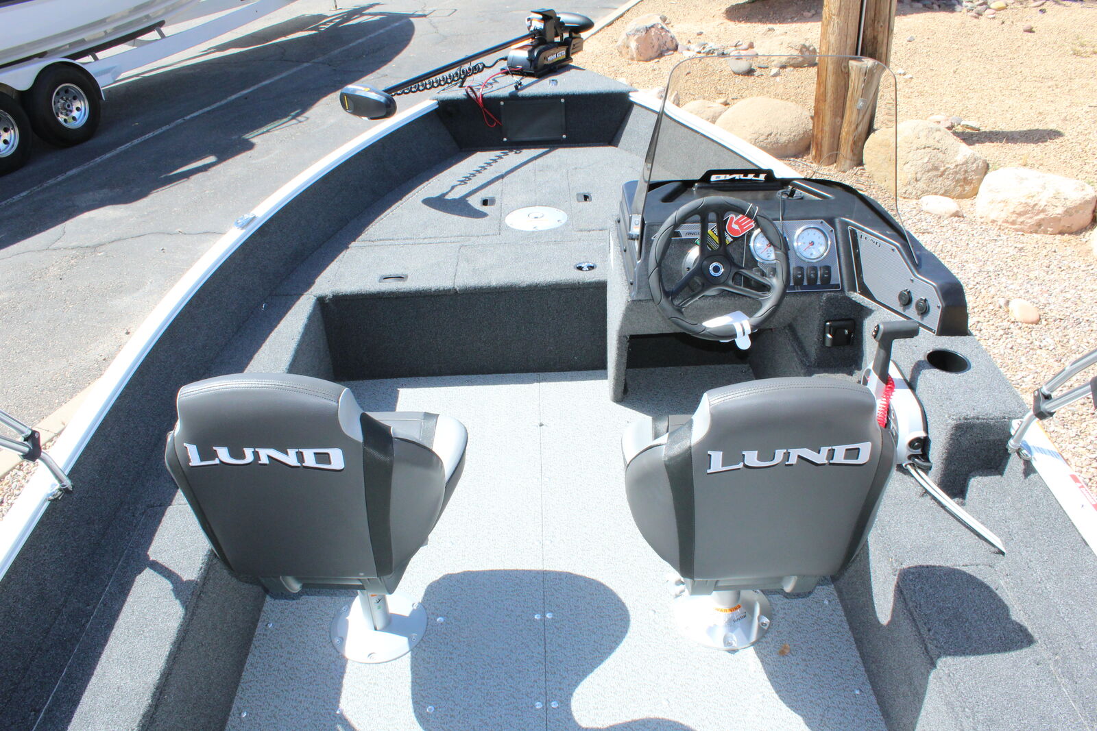 Options Include: -Aluminum Prop -Mercury Analog Gauges -Lundguard Bunk Trailer -Spare Tire -Load Guides -2 Step Strap Boarding Ladder -Travel Cover -Bimini Top -Console Mount Helix 5 Chirp/GPS/G3 Fishfinder -Minnkota Powerdrive 55/DSC/54"/Foot Pedal Bow Mount Electric Trolling Motor -Minnkota 2 Bank Digital Battery Charger