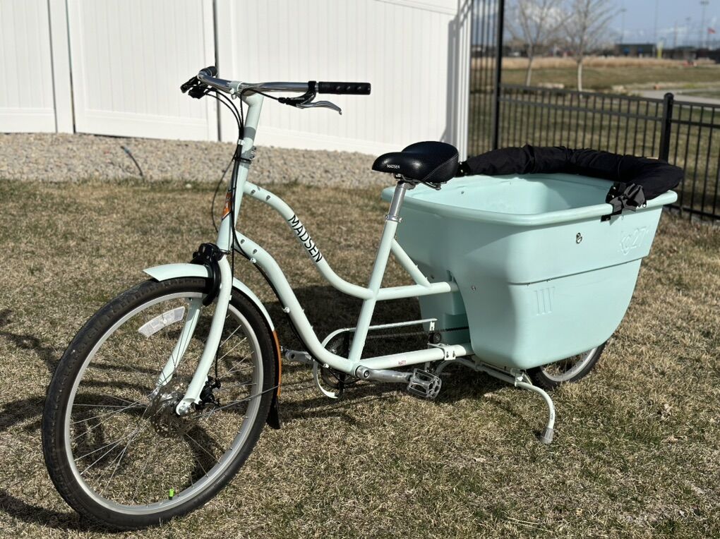 VenmoLooking for the perfect, unique Christmas gift? I have one for you! We have outgrown our beloved “Betty Blue”. She is a super rad Madsen Bucket Bike (pure pedal power aka non electric-but could easily be converted to electric). She served us well for many years as the coolest carpool allowing us to save time and skip the car line, zoom to the park and just for cruising around town. We added the custom bucket cover a couple years ago which leveled up the comfort level for the kids and our ability to use it year round. The kickstand shows some normal wear and tear but she is otherwise in excellent condition, has always been stored inside the garage and meticulously maintained. The bucket can seat up to 4 kids with lap belts for each and the bike is geared to be able to pedal a full bucket with relative ease. Seat benches are removable for easy cleaning or to haul gear. No rips or tears in the bench fabric. Has a built in bike lock on the front wheel with 2 keys included. Madsen is a local Utah company based out of Holladay and sells many accessories to customize to your needs including an electric pedal assist kit (you could get that and have it installed and have the coolest electric bucket bike for nearly half the cost of the brand new ones). Located in Saratoga Springs. Willing to deliver for free depending on distance. Let me know if you’d like to come take a look!