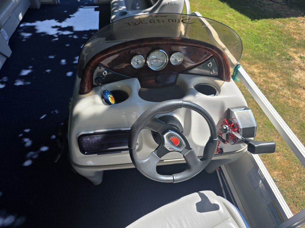 2011 Sun Tracker Party Barge 24 with a Mercury 115hp motor. Just got back from Lake Powell, had a blast in this boat. Tons of room, newer seats and carpet, very comfy. Huge front and rear decks. The front deck has 2 removable fishing seats. loads of storage. Newer battery. Trailer has newer tires and maintained wheel brakes and bearings. Stored inside most of its life. New 9 inch Lowrance fish finder installed this year, will be included if the price is right.
