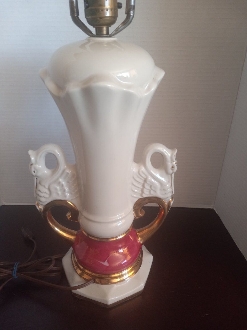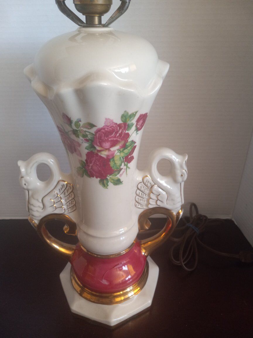ANTIQUE PORCELAIN LAMP WITH A BEAUTIFUL FLORAL DESIGN MEASURES 24" X 6" WOULD ENHANCE ANY ROOM IN THE HOUSE. on sale take 50%off the price.