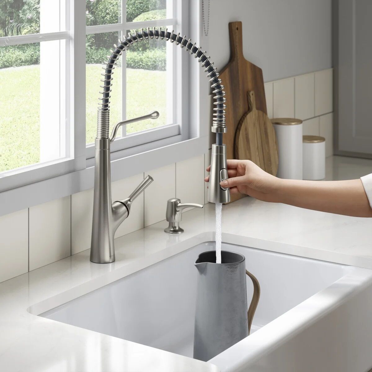 We have one Kohler Albany Semi-Pro Kitchen Faucet in Stainless Steel 1741936 #97685 available. This kitchen faucet is New and comes in the original box.