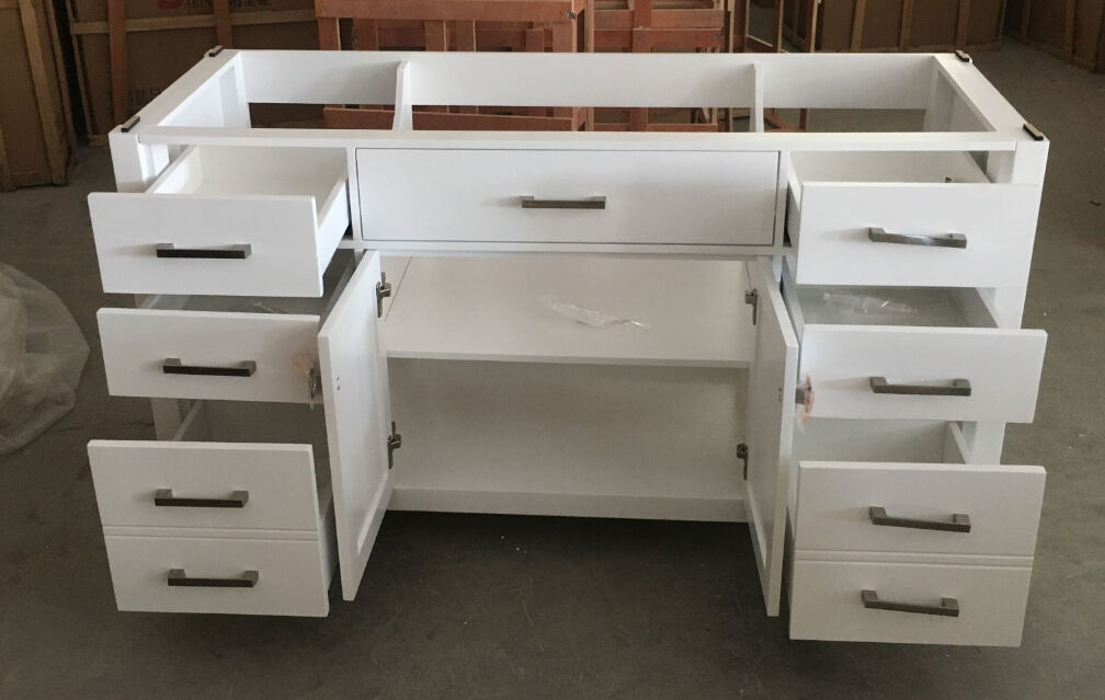 Note: These vanities were packaged with the tops attached/siliconed onto the vanities, and as a result, the vanities are heavy, especially the 60 inch.