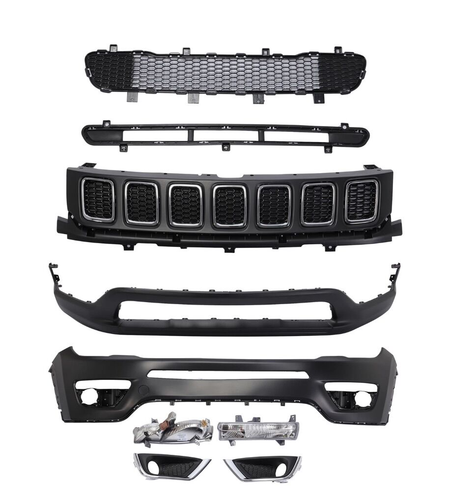 VenmoFront Bumper Set For Jeep Compass 2017 2018 2019 2020 2021 Upper Lower Grill Fog