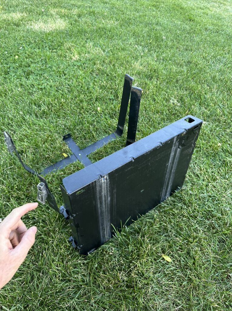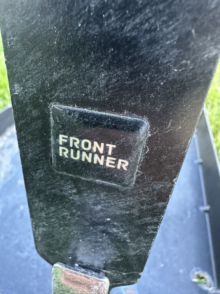 Front runner Double Jerry can holder for roof racks or wherever else you want to bolt it. Good shape and includes hardware. I had this on a JCR rack but it will mount on anything with a Extrusions or T-slots, etc.