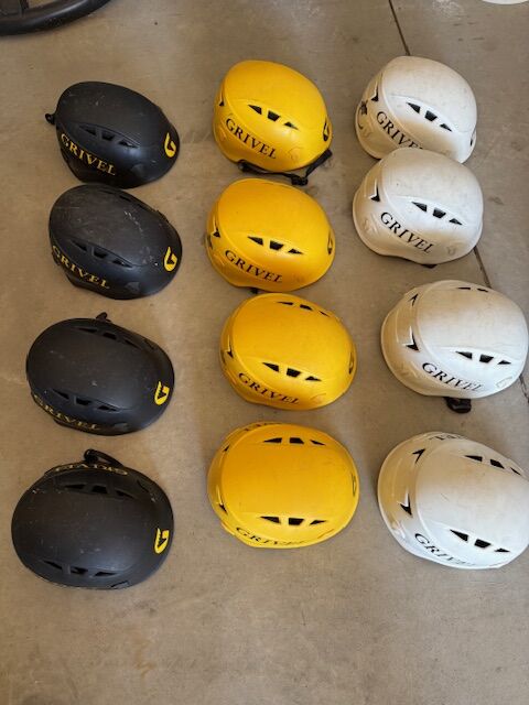 VenmoI have used Grivel helmets for sale that are in good condition. I have 7 left of 3 different colors for sale. The colors are black, yellow and white. They are $25 each or 4 for $90. They adjust in size with the straps inside the helmet so they should fit most size heads. Cash or venmo only. Don't ask to send me a code.