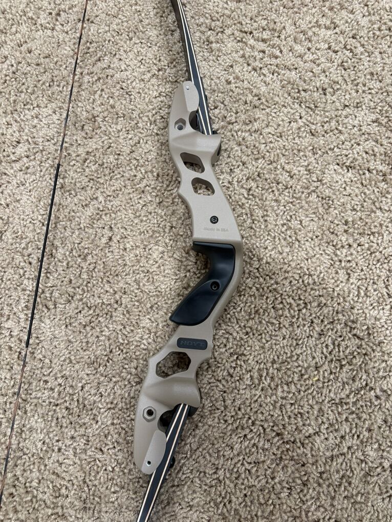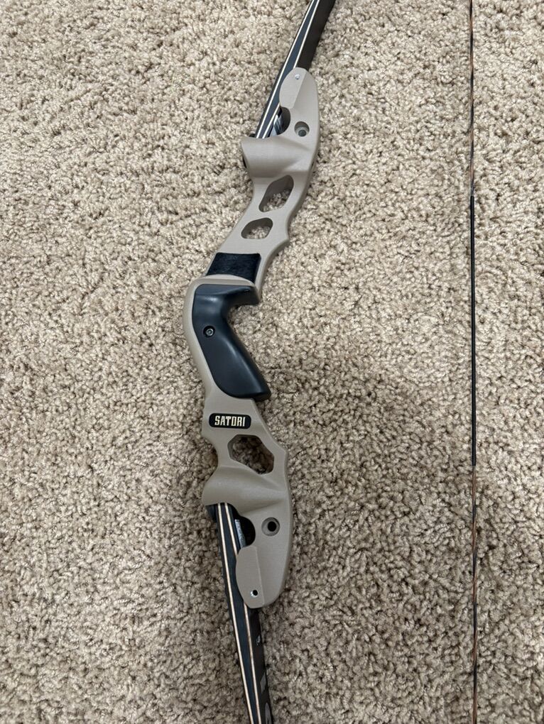 VenmoHoyt Satori 17” Riser (Tan) W&W Blackmax 2.0 40# limbs Long. 62” total length. Hoyt 62” string Hoyt Stringer 6 arrows 500 spine arrows. Carbon Arrows