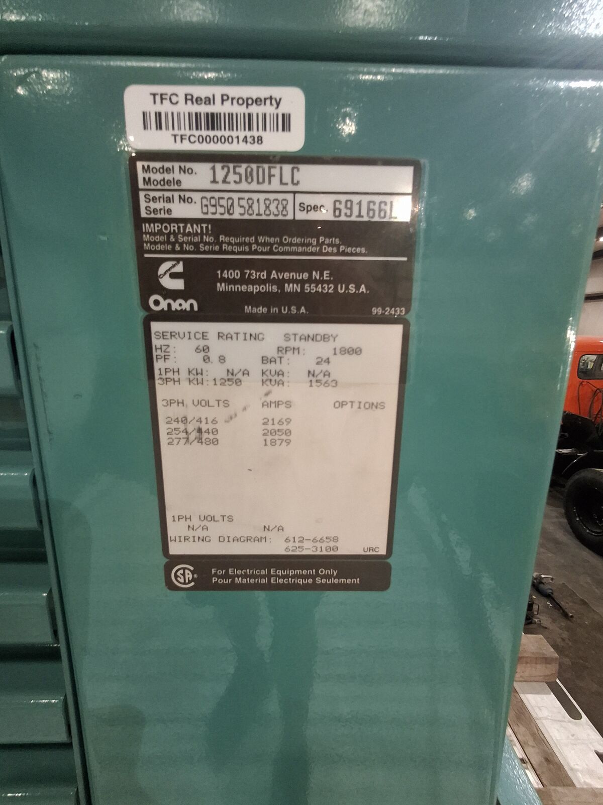 Cummins/Onan 1250DFLC 1250 KW Diesel 60HZ 3 phase Generator