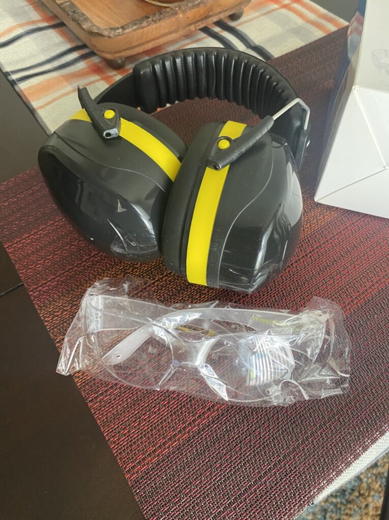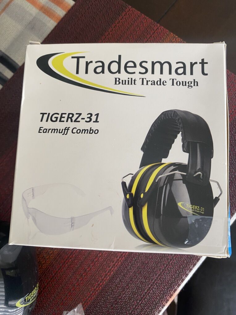 Tradesmart TIGERZ-31 Earmuff/Safety Glasses Combo Hearing Protection Series Comfortable/Extra Thin/Extra Durable Noise Cancelling/High Density Foam Noise Reduction seating 31 Decibels