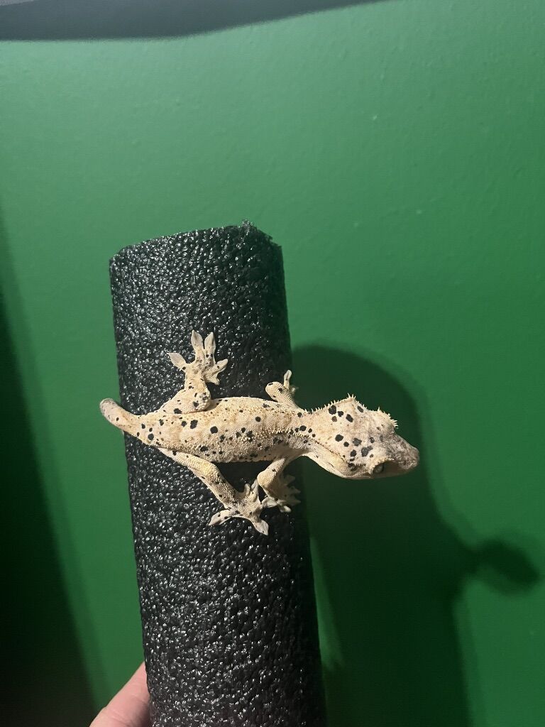 ApplePayHe is currently 13 Grams and eating great! The last two pictures are of his parents. Dad is super dal and mom is patternless. He would be a great breeder or pet! He is super sweet Doesn’t come with an enclosure. Text with any questions! Check out my other ads for more geckos! Comes with bioactive bin enclosure Follow my IG! LP_Geckos