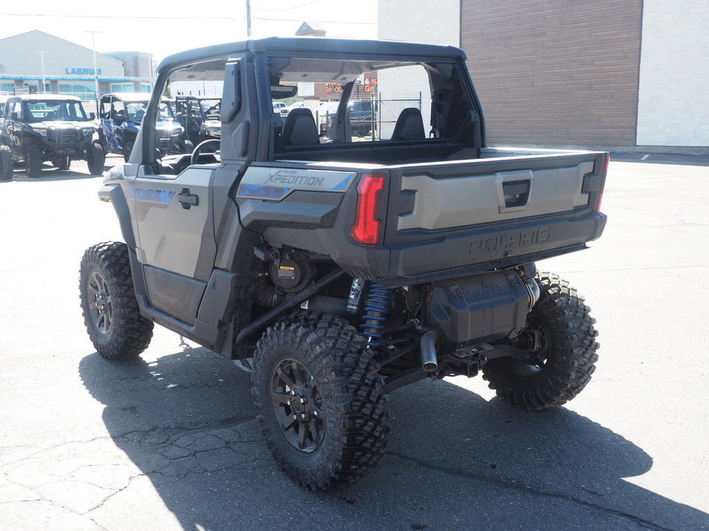 accessorized 2024 Polaris® XPedition XP Ultimate KEEP CHASING THE WILD Load up your gear, break away from the crowd, and start your next adventure with a fully covered cab and cargo box to take your crew and gear deep into the backcountry. Features may include: ULTIMATE TRIM INCLUDES: RIDE COMMAND Technology Integrated Into a 7" Touch Display JBL® Trail Pro 4100 Audio Front & Rear Cameras Tilt Steering 900 W Stator Charging System Tilt & Telescoping Steering Winch Includes: Autostop & Plow Mode XP STANDARD FEATURES: 114 HP ProStar 1000 Gen 2 Engine FOX® Podium QS3 with Position Sensitive Spiral Technology High Clearance Dual A-Arm with Stabilizer Bar 14" of Ground Clearance 30" Pro Armor Crawler XP Tires On-Demand True AWD/2WD/VersaTrac Turf Mode Polaris HD 4500 LB Winch Front Bull Bumper & Full Coverage Skid Plate Lock & Ride MAX Cargo System ADAPTABLE Pack It In, Pack It Out A flat roof allows you to outfit your vehicle with a roof rack and compatible accessories like a tent, awning, recovery gear or whatever other items you need for your next adventure. And the configurable cab and rear bed box allows you to customize your storage options for whatever additional gear is needed for your adventure. Built To Haul A 600 lb. dumping cargo box and a 2,000 lb. towing capacity allows you to pack your gear in the rear box and tow any additional gear behind. Plus, the 60/40-split flip-up rear seats and flat floors make it easy to store things in the rear. Adventure-Ready Customization There are as many ways to use the Polaris XPEDITION as there are activities you're going to pack into a weekend. That's why we offer 100+ accessories to equip your machine for your specific needs. COMFORTABLE Comfortable All Day And Any Season Plush FOX® suspension keeps the ride smooth while the available enclosed cab, with optional heat and AC protects you from the elements. Protection From the Elements Available enclosed cab, heat and AC, and power window full doors keep the elements out. Control modes allow you to set and direct the airflow of the heat and AC system while the sealed cab ensures it stays where you set it. Technology for the Ride RIDE COMMAND technology is pre-loaded with over 1,000,000 miles of mapped trails, waypoints, and Group Ride. The JBL