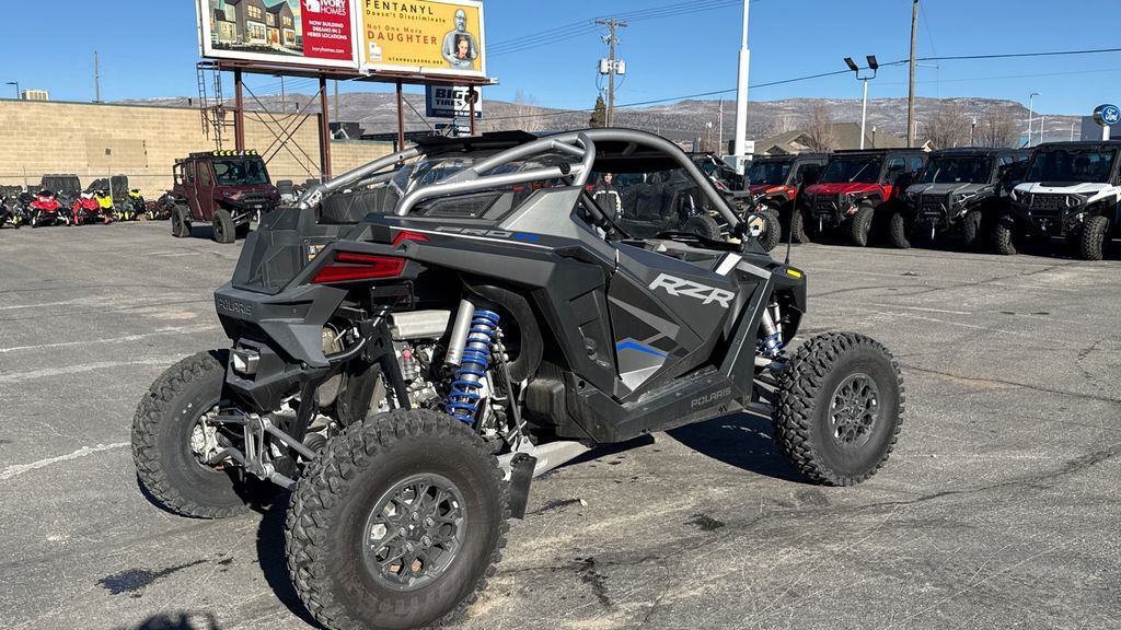 2024 Polaris® RZR Pro R Premium NEXT LEVEL IN WIDE OPEN PERFORMANCE REVOLUTIONARY POWER. INCREDIBLE STRENGTH. Built with the biggest factory side-by-side engine ever, the RZR Pro R is the choice for the most demanding drivers. Features may include: POWER RZR Pro R is a powerful new breed of 2- or 4-seat side-by-side. It has got the largest factory engine ever dropped into a performance side-by-side and an exceptional capacity to power custom accessories. STRENGTH RZR pioneered the sport of side-by-side performance. No side-by-side has covered more miles of dune and desert terrain and no brand has more history. Game Changer Rewriting the rules of side-by-side performance isn't just making one thing better, it’s about challenging everything. Innovation starts here. CONTROL Outrageous power demands exceptional control. RZR Pro R delivers, with the widest stance, longest wheelbase, strongest suspension and four groundbreaking, new ride and handling modes. DYNAMIX DV HANDLING MODES Advanced suspension designed to create a comfortable ride, even on the most extreme terrain. UNRIVALED COMFORT A RZR Pro R is more than just unmatched capability and unbeatable performance, it's also built with industry-leading technology to enhance your off road adventures. Includes RIDE COMMAND Integrated into a 7" Display and Rear Camera RIDE COMMAND+ with Accessory Purchase Rockford Fosgate® Premium Audio Aluminum Roof Retractable 6-pt Harness Full Doors 29" Usable Travel MaxLink Suspension 32" Tires and Aluminum 5-lug Wheels
