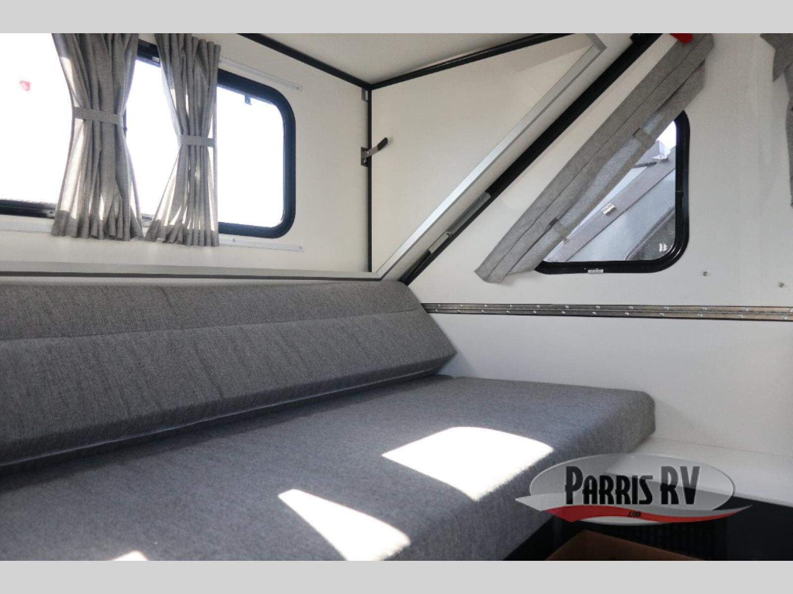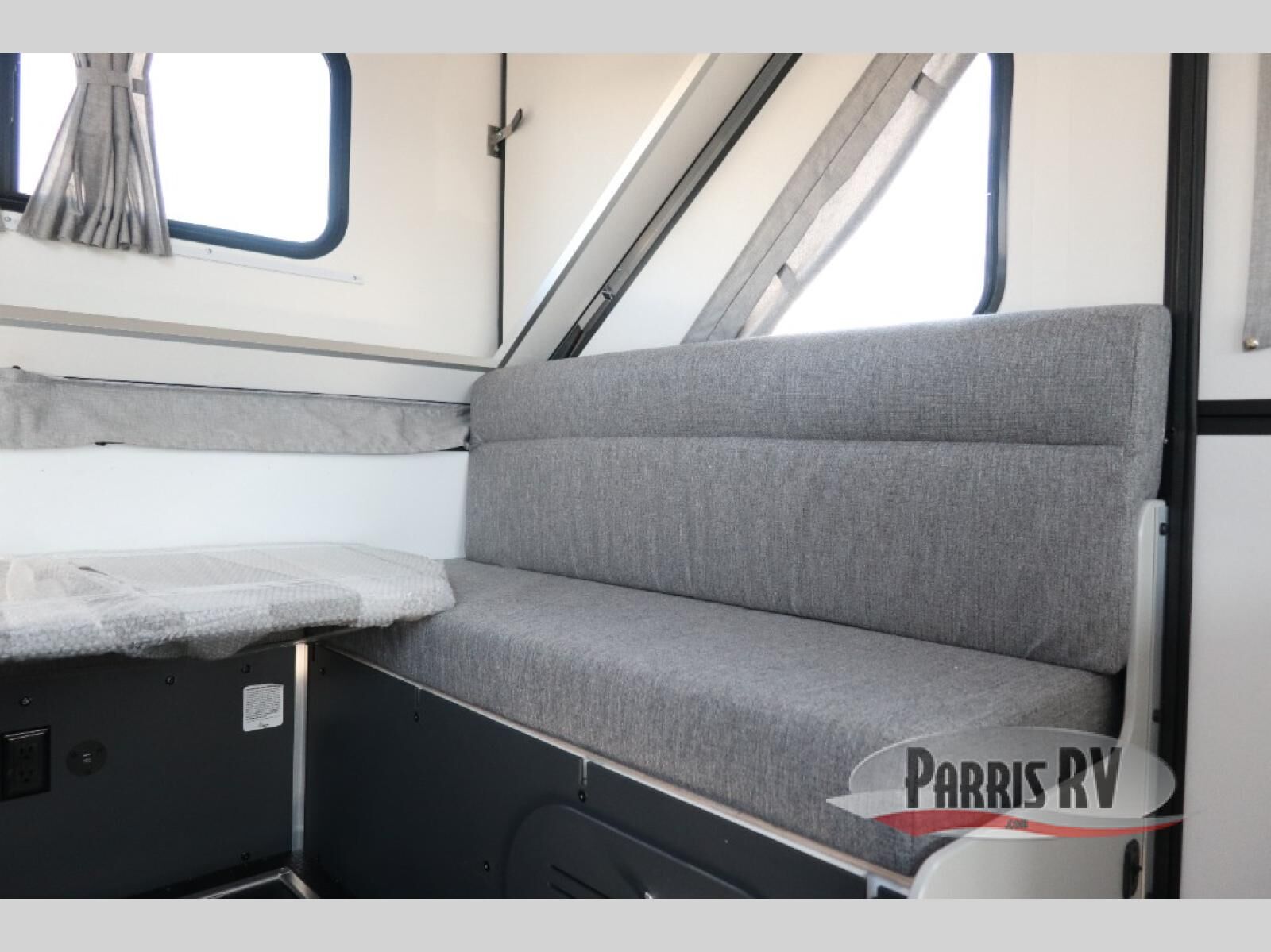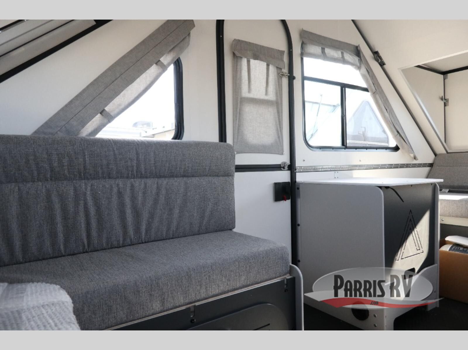 The Evolution A-frame camper by Aliner is coming to you with residential features and solid construction materials. You'll love the slate gray exterior, and the Azdel composite panels included help prolong the life of your camper. There are 15" off-road tires with graphics package, LED running lights, exterior baggage doors, plus many more exterior conveniences. The Evolution A-Frame camper comes with commercial grade, raised coin polyvinyl flooring, SIMONA BOATBOARD interior cabinets and furniture, and three indoor electrical outlets to name a few interior comforts.