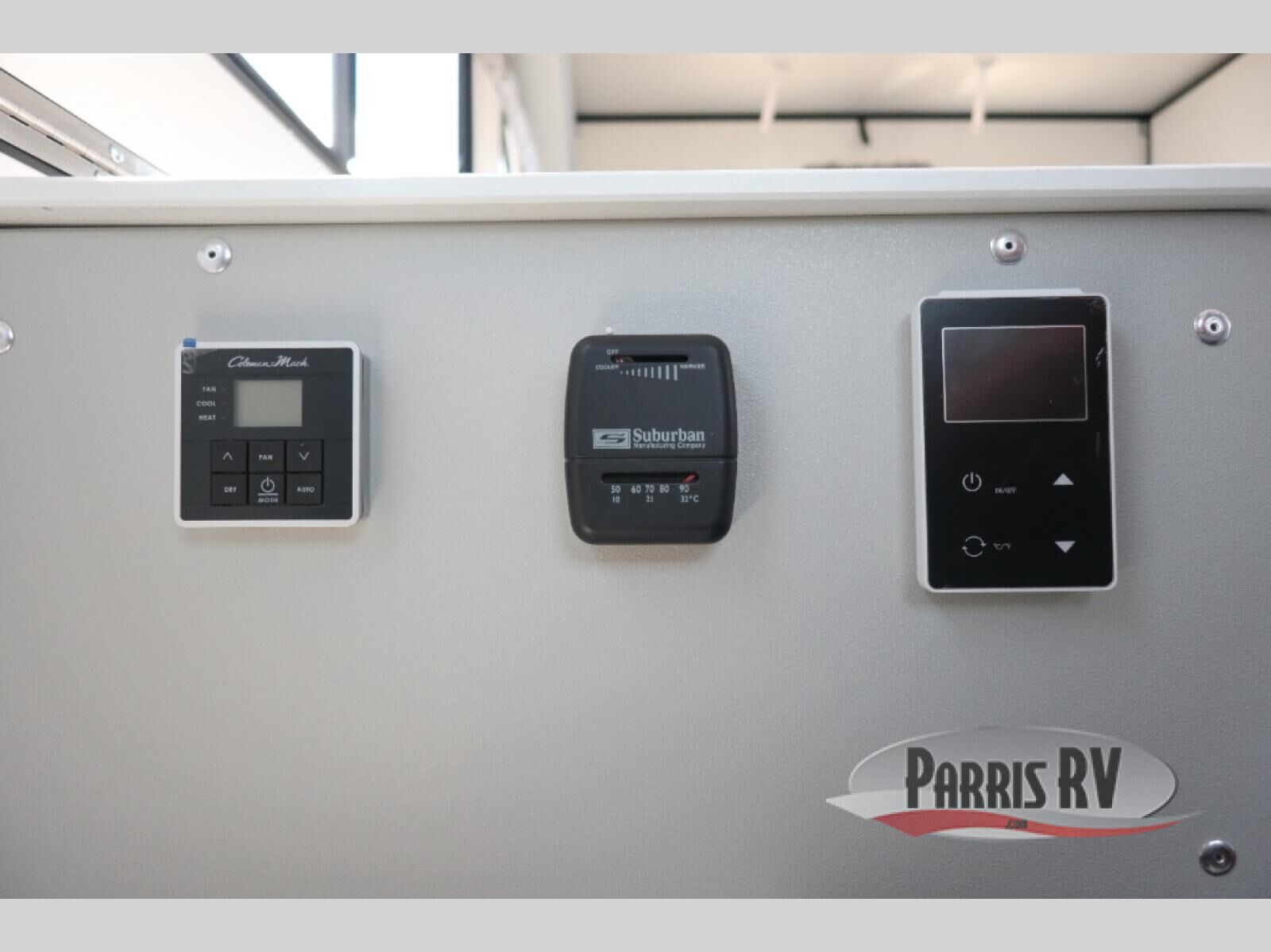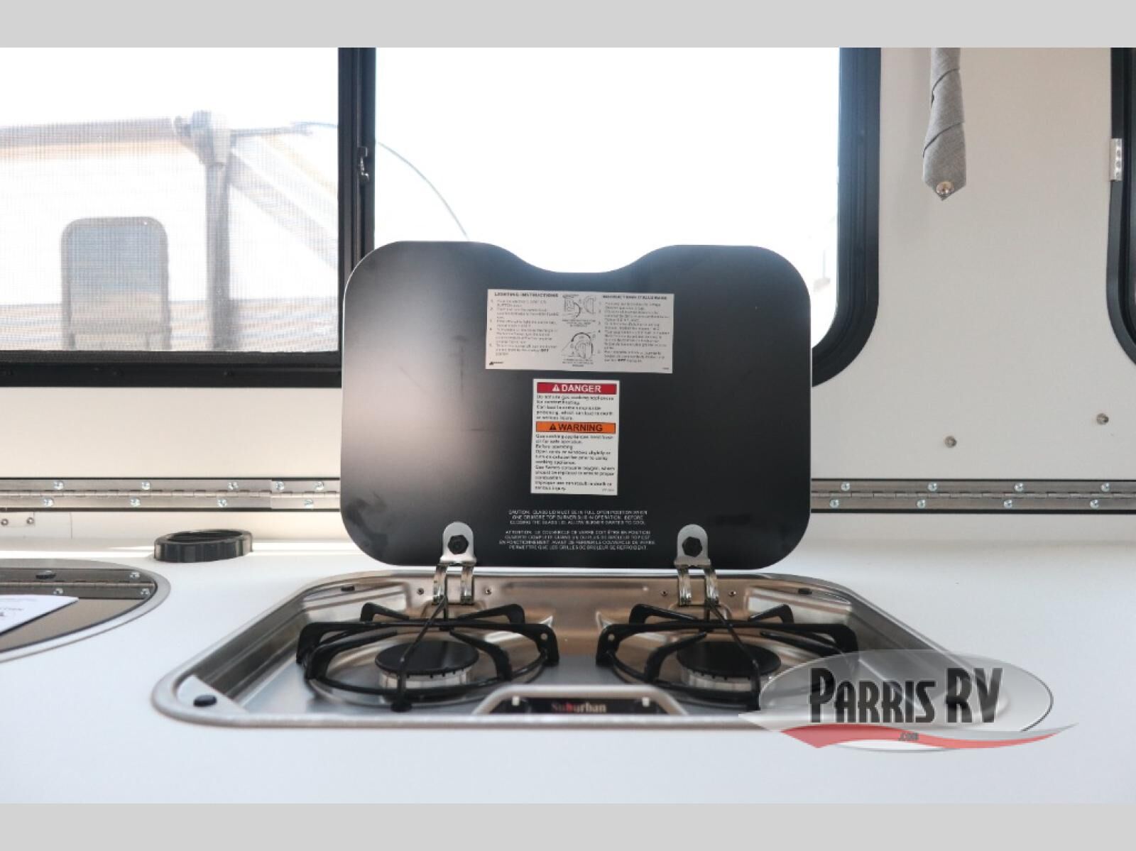 Don't wait another minute; head to the campground in this camper today! There is a two burner cooktop to make lunch on and a 3.0 cu. ft. 3-way refrigerator with a freezer for your cold items, and you can add the optional outside grill if you like to cook outdoors! The sofa bed converts to a queen-size bed and the dinette also converts to a queen-size bed or dual bunks. You'll find storage space under the dinette and on the two shelves, and there is a 32" x 32" hidden shower under the dinette so you can clean up each day. This model also has a dry weight of 2,400 lbs. for easy towing!