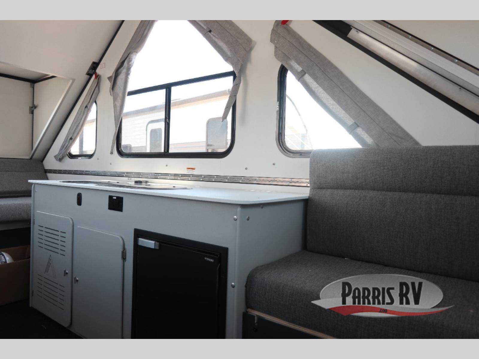 The Evolution A-frame camper by Aliner is coming to you with residential features and solid construction materials. You'll love the slate gray exterior, and the Azdel composite panels included help prolong the life of your camper. There are 15" off-road tires with graphics package, LED running lights, exterior baggage doors, plus many more exterior conveniences. The Evolution A-Frame camper comes with commercial grade, raised coin polyvinyl flooring, SIMONA BOATBOARD interior cabinets and furniture, and three indoor electrical outlets to name a few interior comforts.