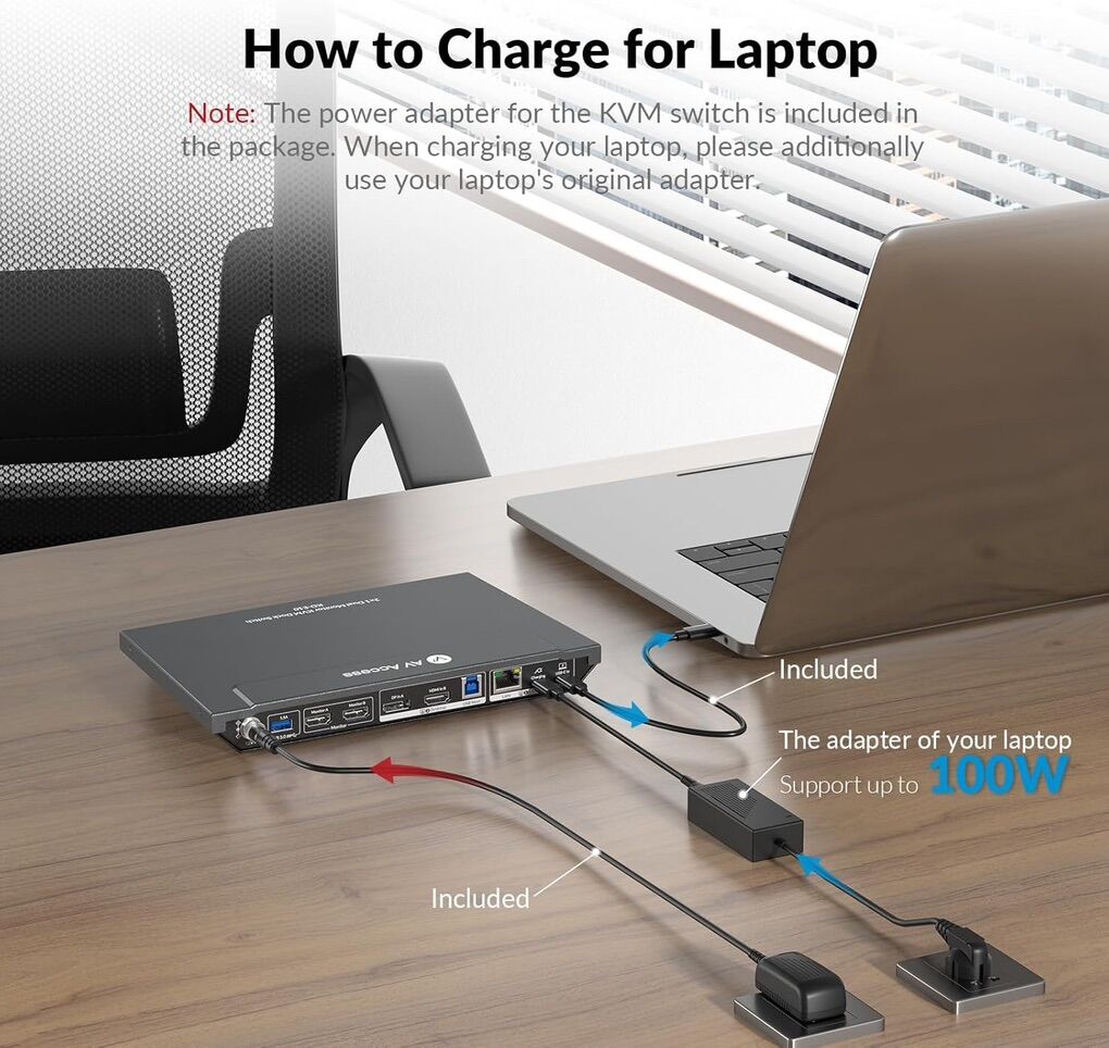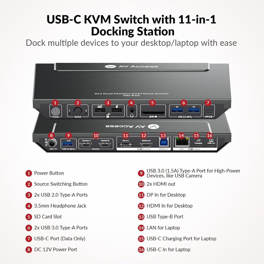 VenmoBrand new, AV Access KVM Switch Docking Station for 2 Monitors 2 Computers, 4K KVM Switch Dual Monitor for Laptop & Desktop, EDID, 1G Ethernet, 100W USB-C Charging, 3X USB 3.0, Ideal for Home Office & Gaming