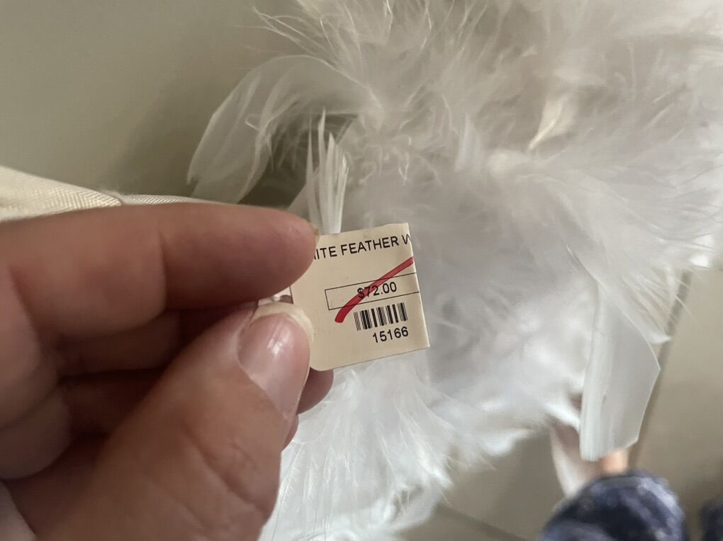 I have a new white feather wreath with an ivory or cream colored ribbon hanging loop. It is about 17 inches across. The price tag shows it was originally $72 at the boutique where it was sold. I’m asking just $10. See my other ads for jewelry, artwork, home decor and more.