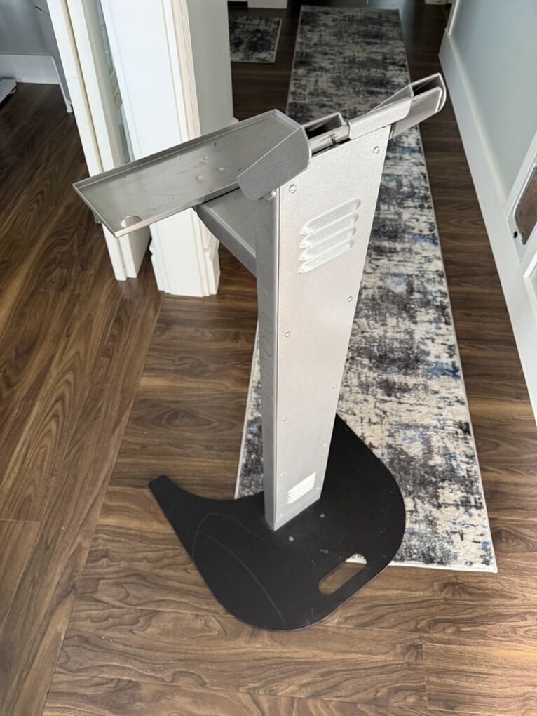 Kiosk stand. VESA mount. 41” monitor height. 34” keyboard height. Wires can be hidden inside the stand