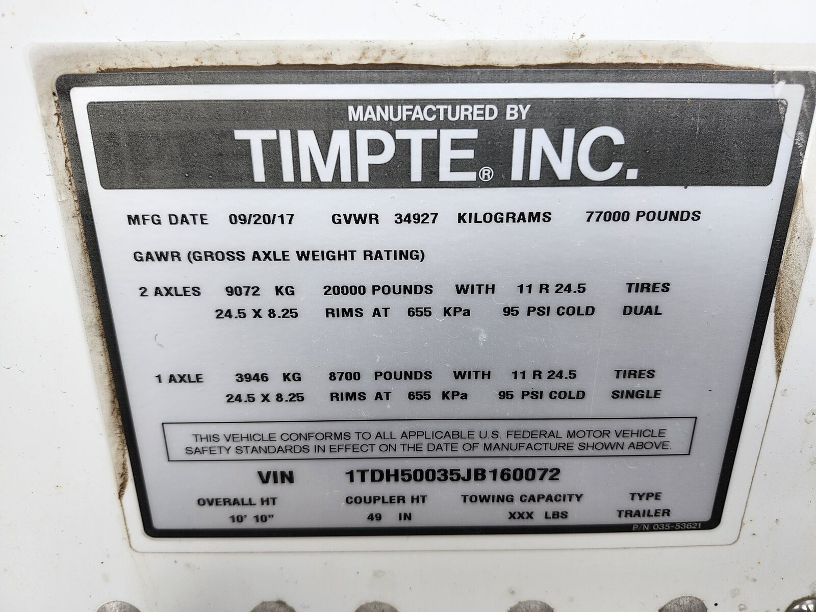 50' x 96" Super Hopper, 21" Hopper ground clearance, 48" L x 32" W Hopper opening, 20" Kingpin setting, Tri-axle, 47" 1st-2nd axle spread, 78" 2nd-3rd axle spread, Front/Rear ladders, 72" Side height, 10'10" Overall height, Air ride suspension, 3rd axle lift, Electric roll over tarp with remote, 2 Speed landing gear, 77K GAWR