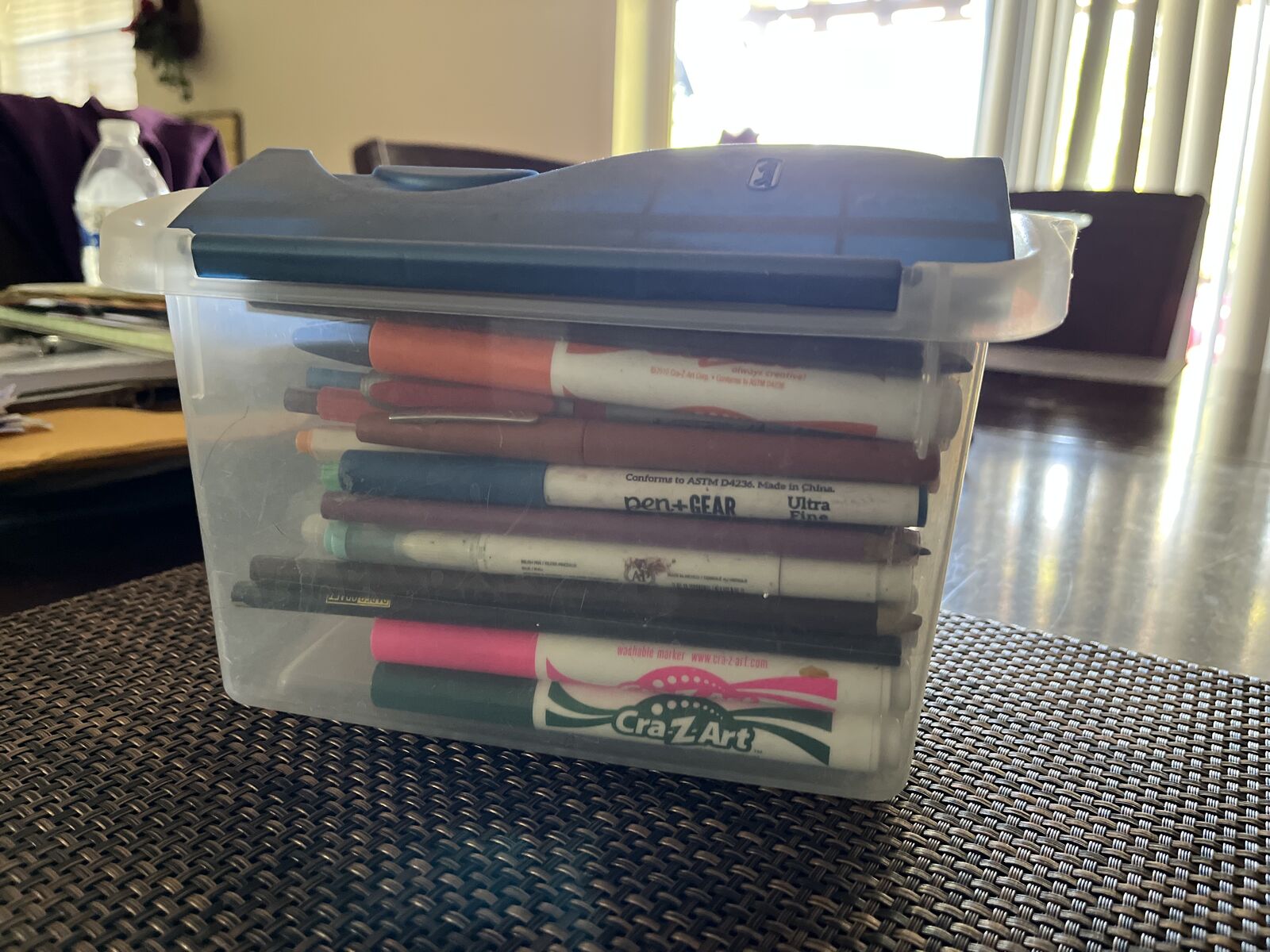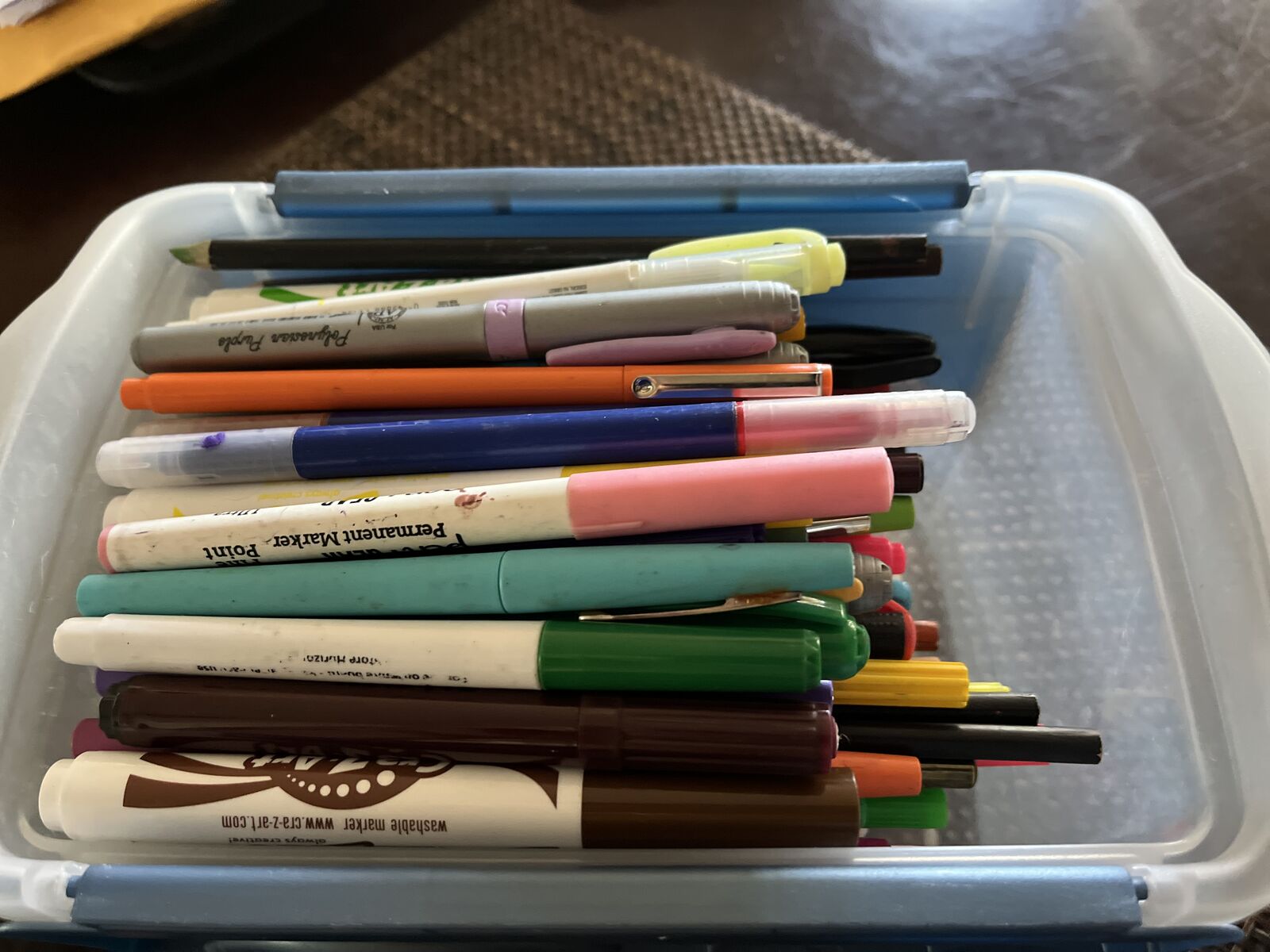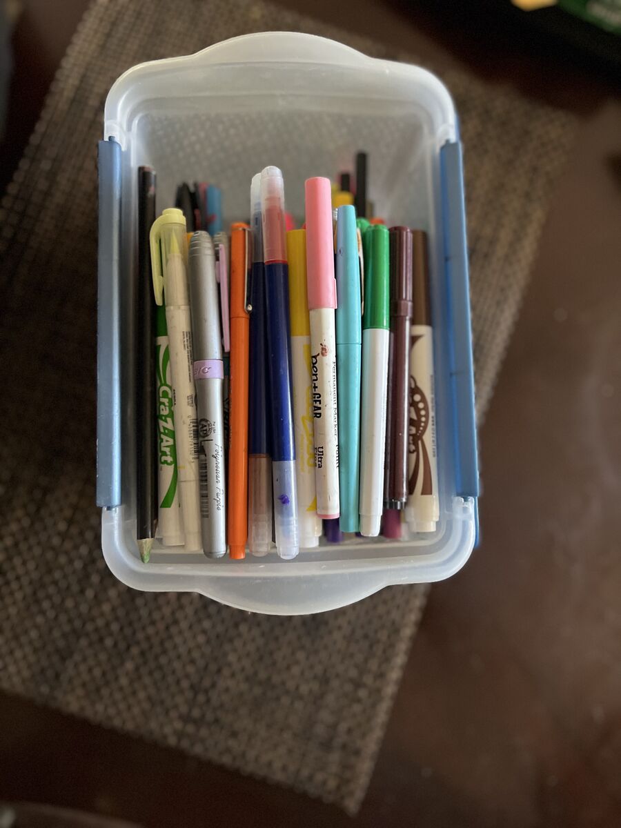 Bin of markers and colored pencils . $10 Call 385-202-9997