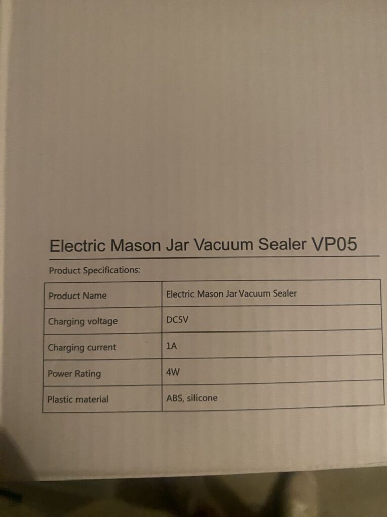 Electric Mason Jar Vacuum Sealer Never used, still in box.