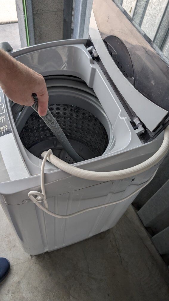 good shape, no reported problems other than the taped up hose. supposedly less than a year old.