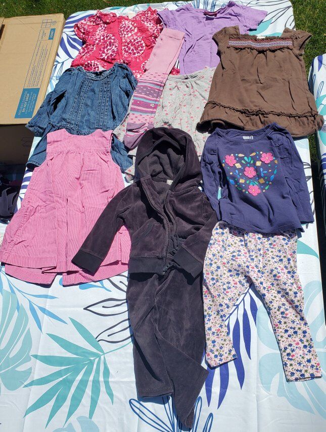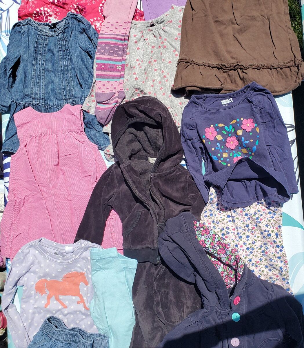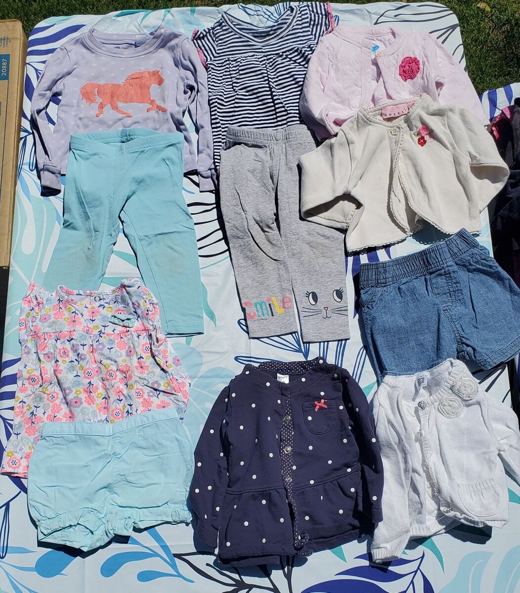 Carter's 12 month blue pink white neon outfit Carter's 12 month blue stretch pants Carter's 12 month dark blue with polka dot jacket Tucker Tate sleepwear purple with horse Carter's 12m outfit blue-white striped shirt Gray pants cat smile Garanimals blue levi shorts Carter's 12 month white jacket shrug with roses Sweet 12m cream jacket shrug Bon bébé 12m pink shrug Baby gap 12-18m navy blue jacket with colorful buttons Old navy 12 to 18 month black velvet outfit pants and jacket Gymboree 12-18m pink dress Baby gap 12-18 month blue Levi dress Crazy 8 12-18 month shirt and pants flowered outfit Old navy 12 to 18 month red dress with purple and white hearts Baby gap 12-18 month Gray dress with red hearts City threads 12-18 month purple shirt Old navy 12-18 month brown dress Pink tights
