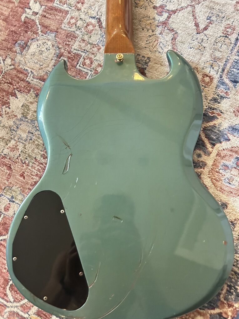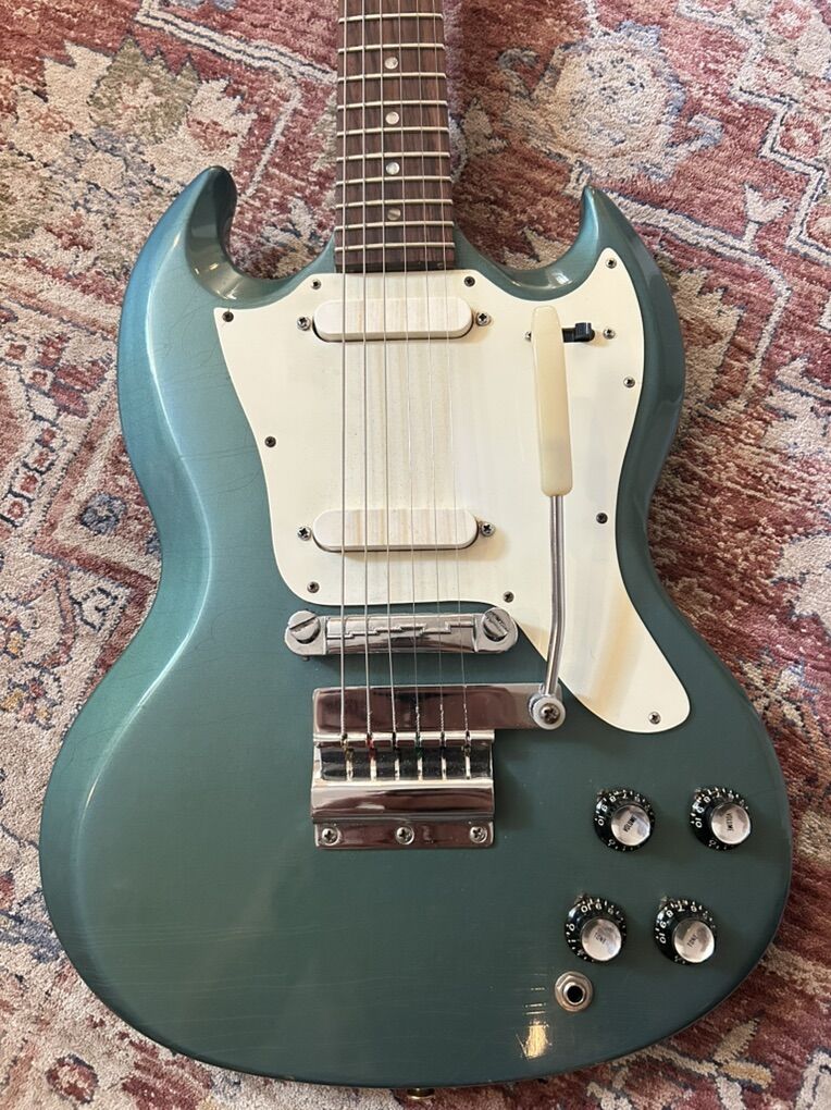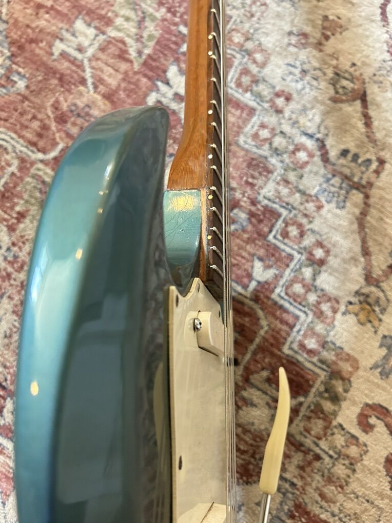 Original case included I had Guitar Czar reset the neck, refret and PLEK it. The trem arm can be used and stay in tune. The pickup selector is a little scratchy, but otherwise both pickups sound great. In the photos you can see where the neck pocket has some wood added to level the fretboard.