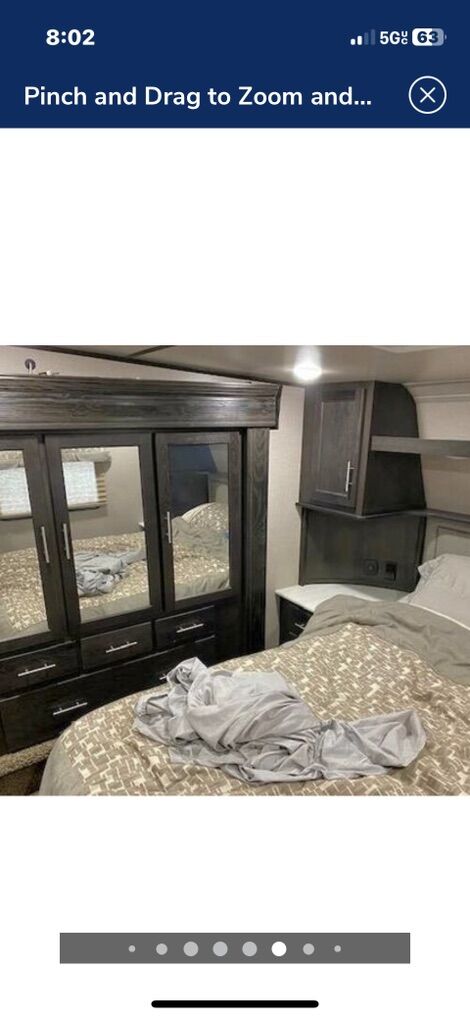2020 lightly used 5th wheel in great condition. Onan gas generator, 2 AC units, tandem axel, tire covers, Anderson 5th wheel hitch, 2 slides, double queen beds in garage, master bed & mattress, exterior fridge, lots of storage. Tire covers, full RV UV cover, new batteries, etc. New full cover for protection from the elements.