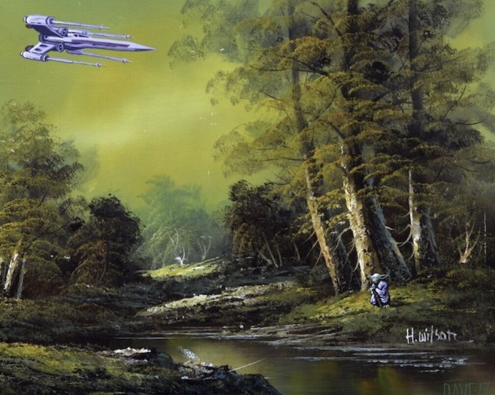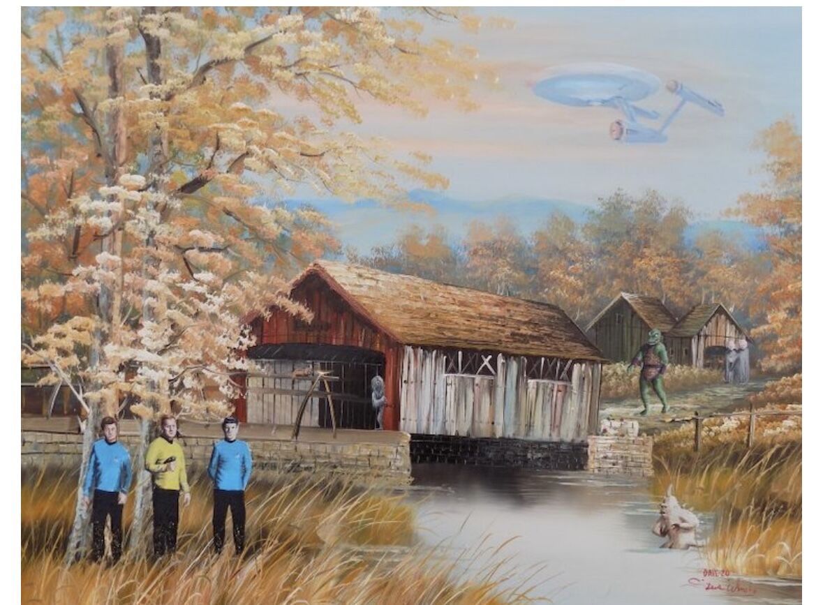 Bbig, beautiful, framed mid-century prints. Keep them as they are, or if your a fan of Star Wars, Star Trek or othet amazing Sci-Fi, they'd be perfect for a few extra terrestrial additions. I've included a few examples of how old painting can become whimsical art.