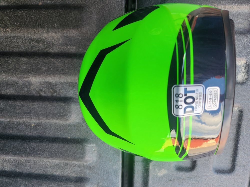 It is designed for dirt biking, ATV riding, motocross, and snowmobiling. The helmet is green and features black graphic accents. This type of helmet offers protection for off-road riding activities.