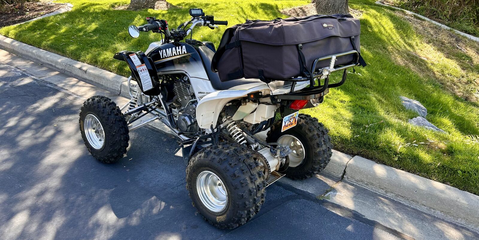 One owner. Garage kept. Street legal (speedometer, tachometer, horn, blinkers), Skid plate. Storage bag. Both carbutetors just rebuilt. Safety whip flag.