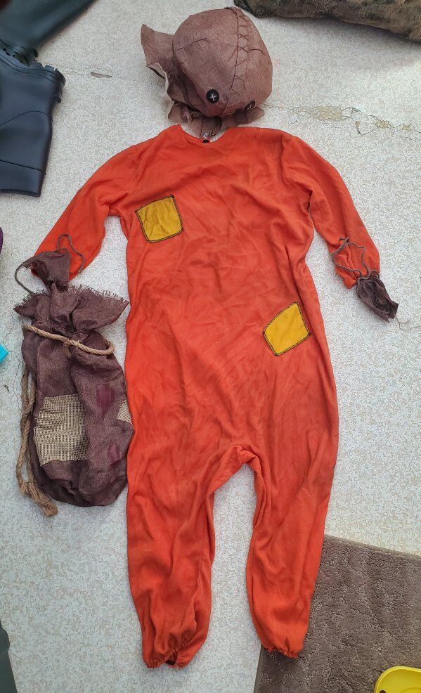 Kid's Sam costume jumpsuit with candy bag Trick 'r Treat Spirit Halloween Used wore a few times Size XL See pictures $ obo