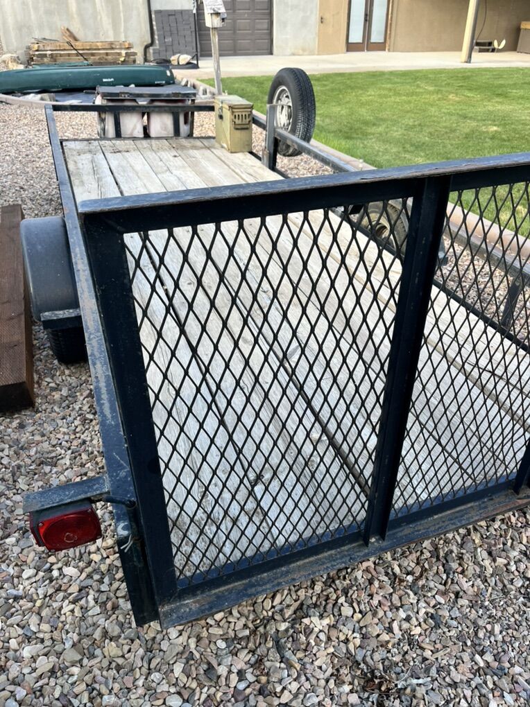 VenmoGreat utility trailer. Has a full size spare. Also has storage on the tongue with a couple 5 gallon gas cans that also locks. Rear gate that acts as a ramp. Single axle so it doesn’t need to be licensed in Utah. Takes a 2” ball. The jack has a wheel on it and it’s easy to move around by hand on a flat surface. I used this mostly for hauling two full size 4 wheelers. It’s also really handy for hauling other things. All lights are in good shape and working.