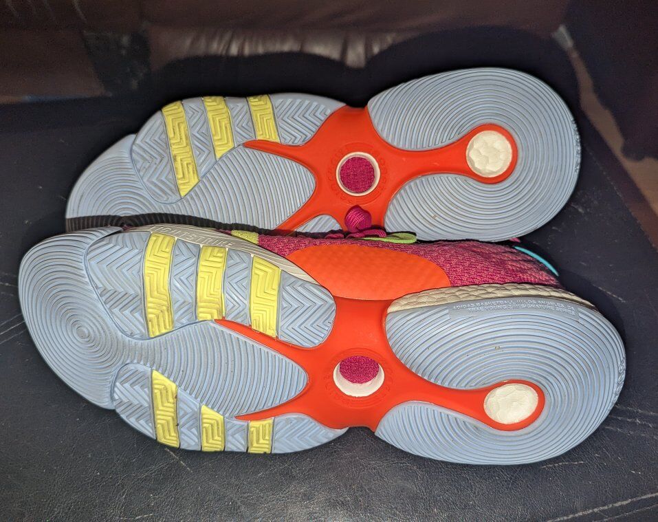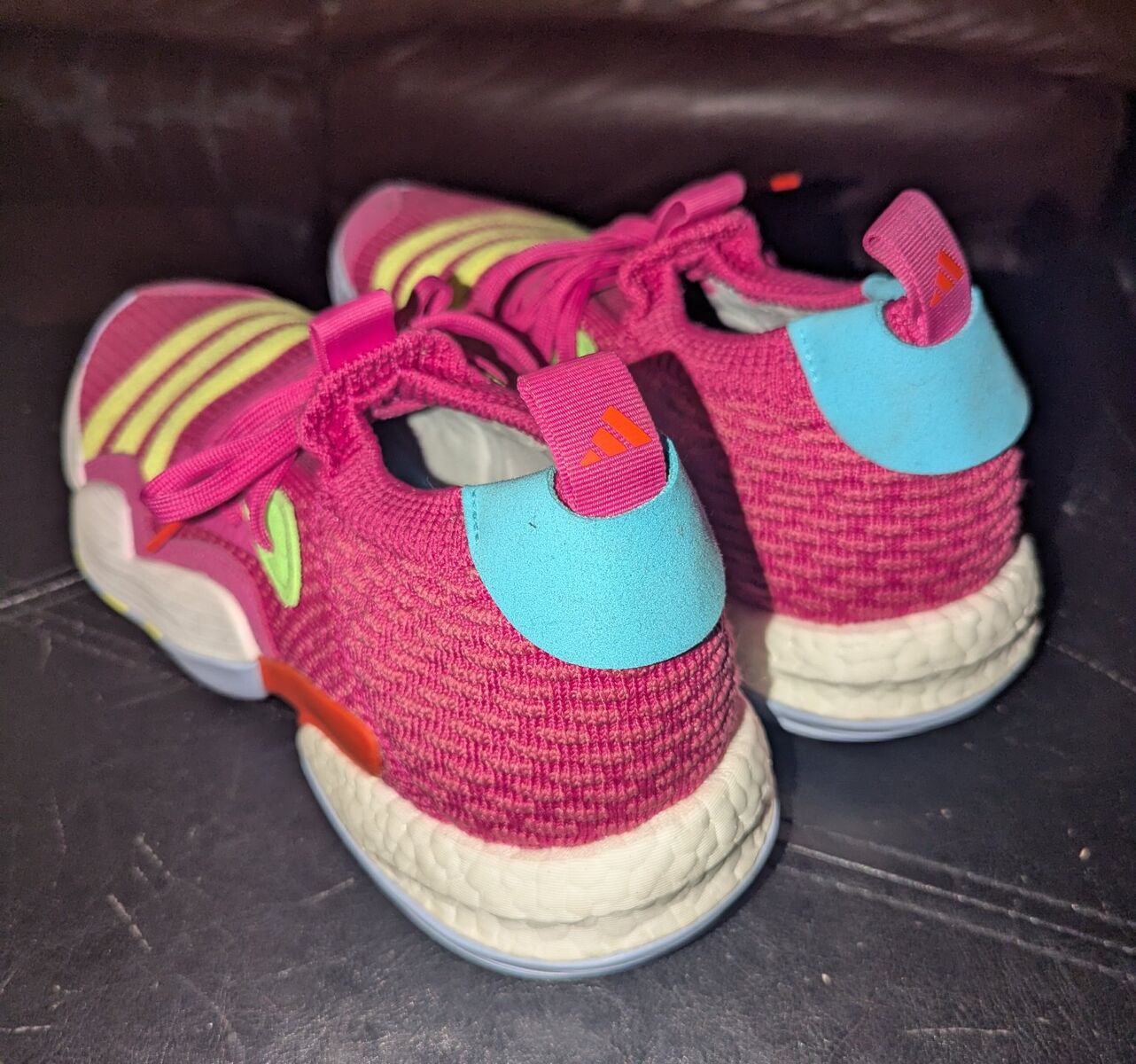 VenmoSee pictures, they look like they've never been worn. Colors are hot pink with yellow stripes, blue at the back, and some neon green accents, too.