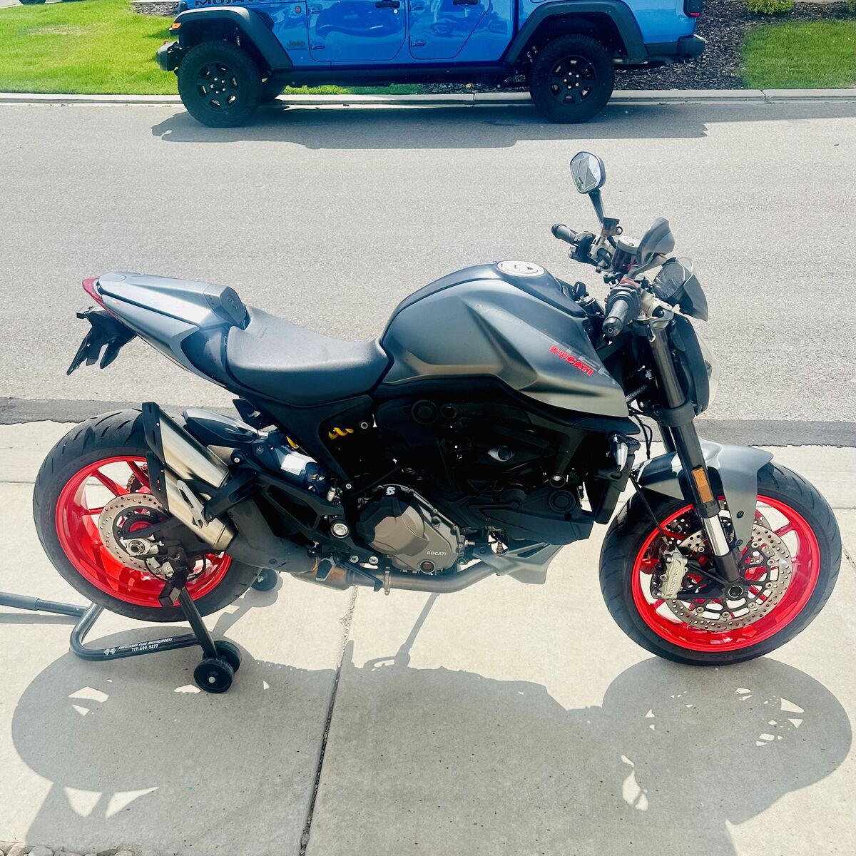 2021 Ducati Monster Plus 937 with 4K miles. From factory it comes with Traction control, Wheelie control, Cornering ABS, Selectable ride modes (Sport, Touring, Urban), Brembo brakes, Full-color TFT display and LED headlight and taillight