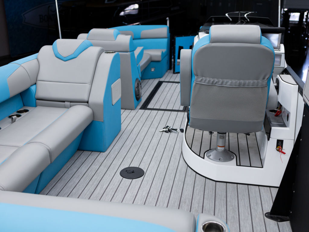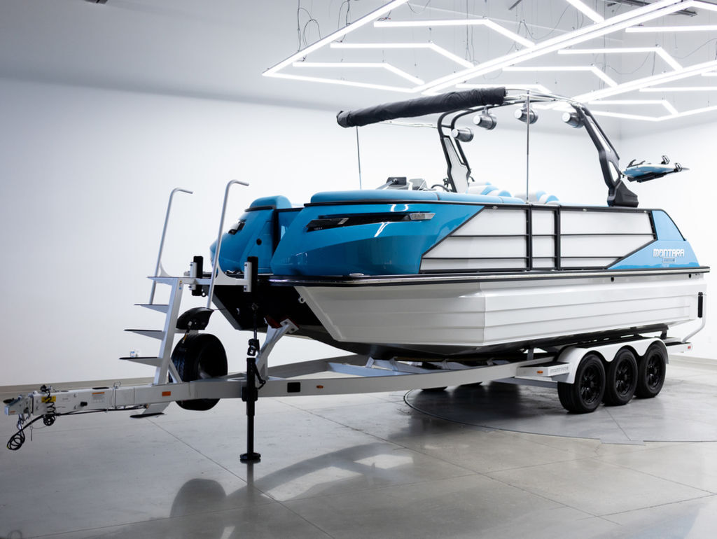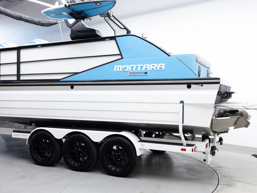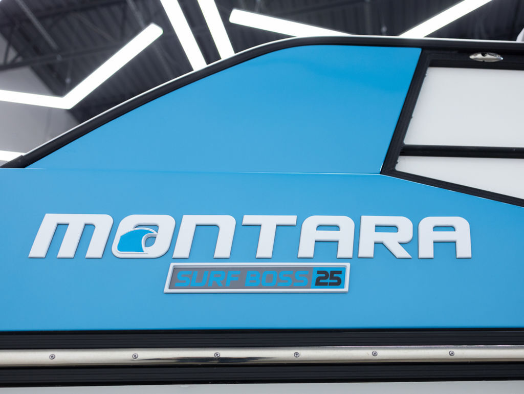 The surf Boss is changing the game in the wake/surf boat world! The ultimate fusion between the luxury of a pontoon and the performance of a water sports tow boat. The Surf Boss 2.0 is designed with versatility and performance in mind maximizing your fun when spending time on the water. This Surf Boss 2.0 has all the options you expect from a top surf boat. Montara cut no corners when they built the Surf Boss. From the premium seating material, Boston Acoustic Audio 12 speakers with 2 subs, to the world class PCM 6.2L motor and V-Drive system, and 4,200lbs of ballast will a fully adjustable triple tab Surf System you will be the envy of the water. The Surf Boss 2.0 will give you all the space you want and desire with the performance to throw an amazing wave out of the back. After a fun day of surfing you can stay on the lake and break out the grill and have an amazing a meal on the water. The Surf Boss can do it all, so no more of having to have two boats to fill your water sports needs. This is truly like having the best Pontoon and surf boat in one. Come visit us out our showroom and we will show you in person what makes our Surf Boss so special and unique. We look forward to showing you how to make your water experience even better.