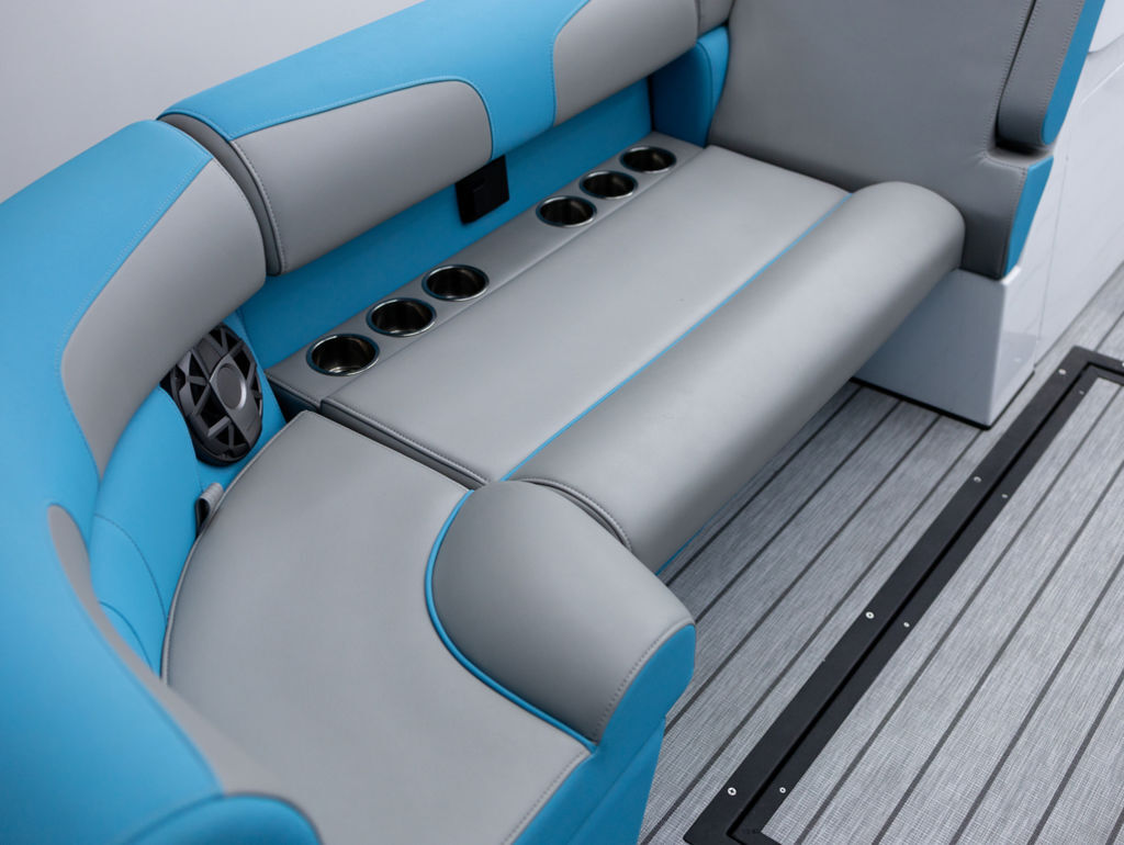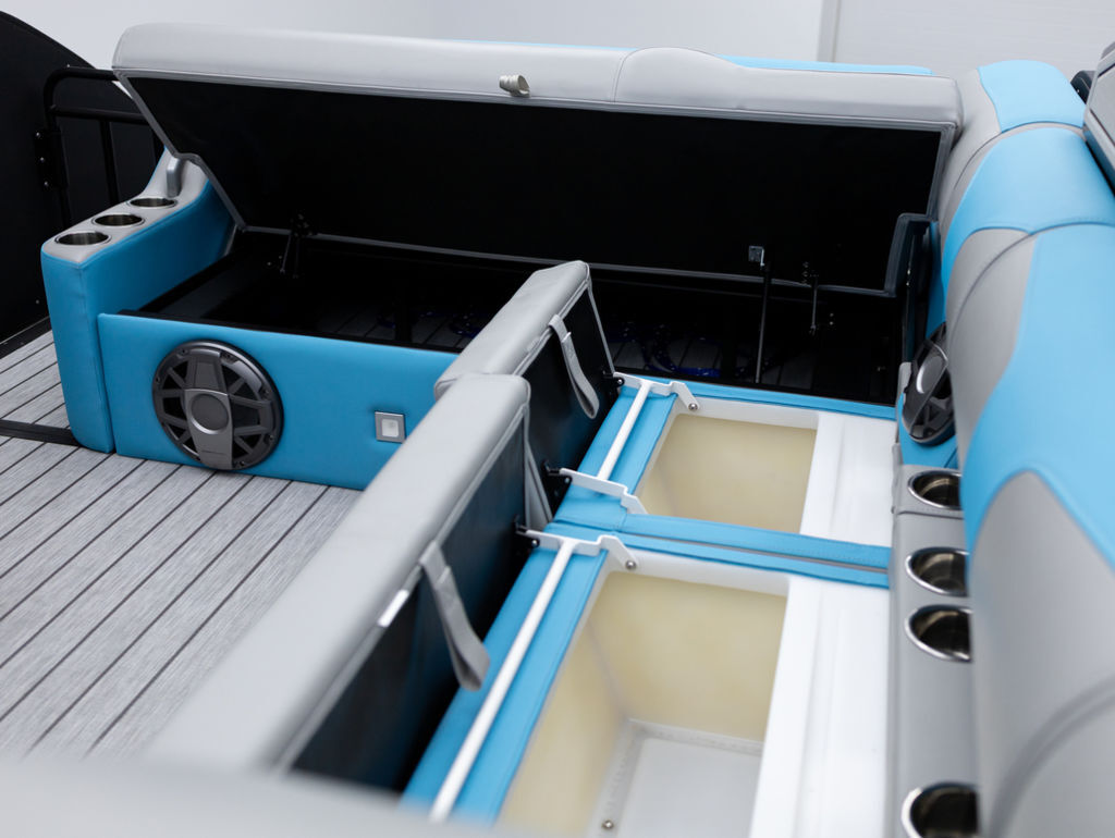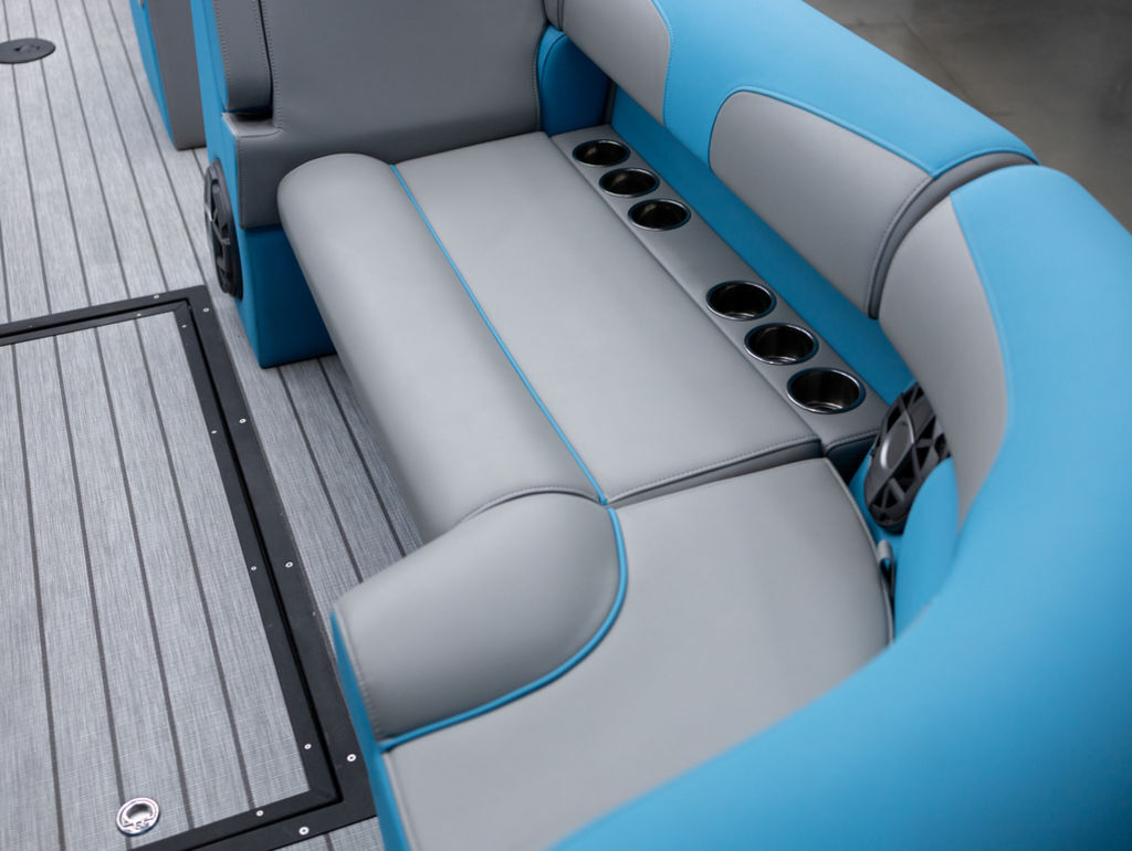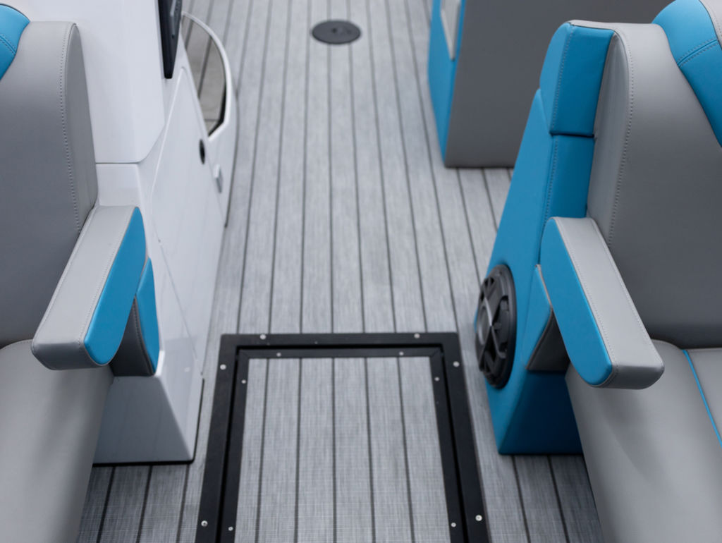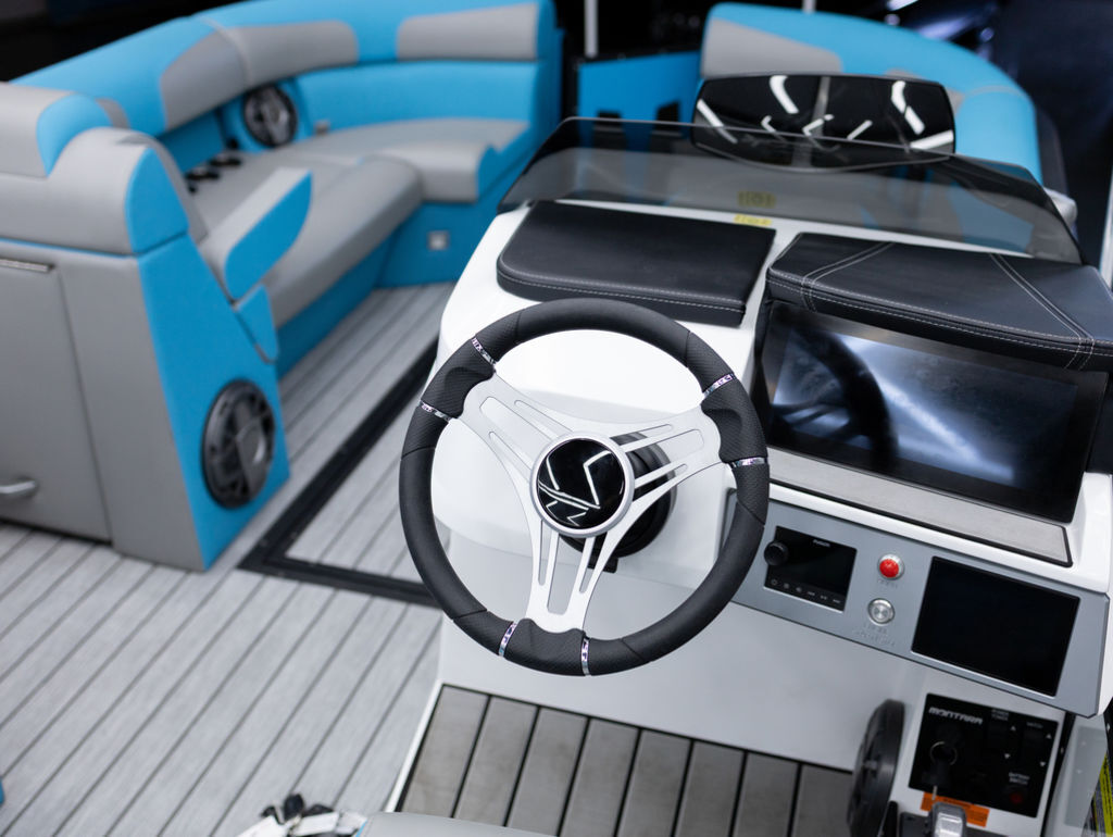 The surf Boss is changing the game in the wake/surf boat world! The ultimate fusion between the luxury of a pontoon and the performance of a water sports tow boat. The Surf Boss 2.0 is designed with versatility and performance in mind maximizing your fun when spending time on the water. This Surf Boss 2.0 has all the options you expect from a top surf boat. Montara cut no corners when they built the Surf Boss. From the premium seating material, Boston Acoustic Audio 12 speakers with 2 subs, to the world class PCM 6.2L motor and V-Drive system, and 4,200lbs of ballast will a fully adjustable triple tab Surf System you will be the envy of the water. The Surf Boss 2.0 will give you all the space you want and desire with the performance to throw an amazing wave out of the back. After a fun day of surfing you can stay on the lake and break out the grill and have an amazing a meal on the water. The Surf Boss can do it all, so no more of having to have two boats to fill your water sports needs. This is truly like having the best Pontoon and surf boat in one. Come visit us out our showroom and we will show you in person what makes our Surf Boss so special and unique. We look forward to showing you how to make your water experience even better.