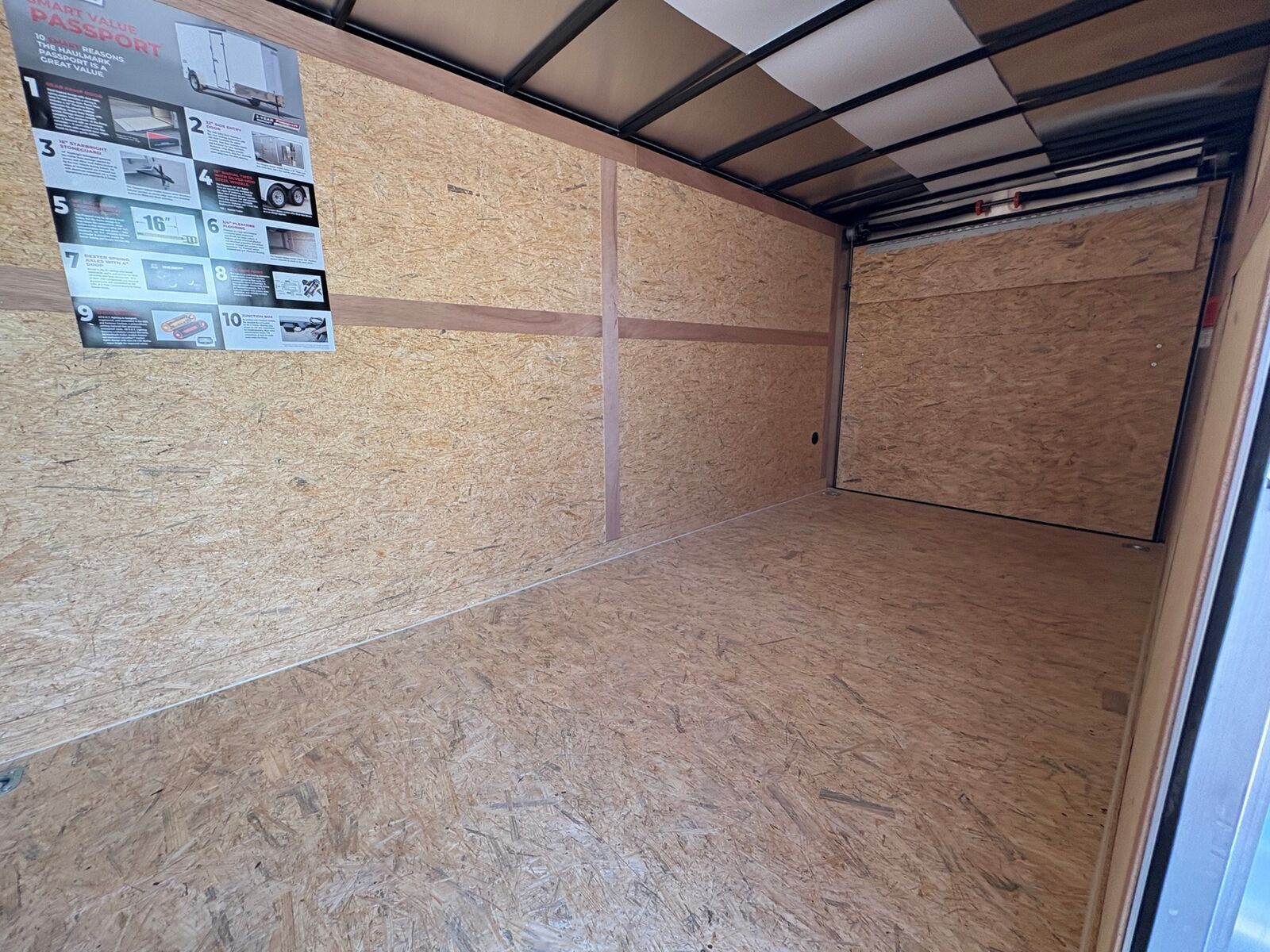 Deluxe Package 7' Tall 4 D-rings 3/8 Wall Liner Entire Chassis Undercoated White .024 Aluminum Exterior (With Screws) Safety Chains 3/4" PlexCore High Performance Decking Silver Mod Wheels E-Z Lube® Hubs Pass-Thru Side Door with Flush Lock & Dead Bolt Rear Ramp Door with Spring Assist Flow-Thru Sidewall Vents 12v LED Exterior Lighting 16" OC Floor Crossmembers 16" OC Vertical Posts 15" Radial Tires 16" Starbright Stoneguard Smooth Aluminum Radius Fenders 12v LED Dome Light Economy Sidewall Liner Spring Axles with 4" Drop 1-Year Limited Warranty 2" x 3" Tube Main Rails (Single Axle) 2" x 4" Tube Main Rails (Tandem Axle) 24" OC Tube Roof Structure