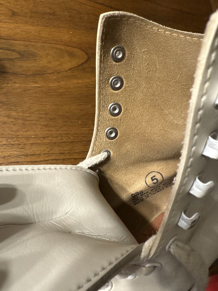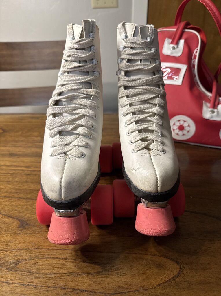 VenmoClassic white rollerskates in good condition. They are the quality Pacesetter brand. They are size 5 with a leather lining. They come with a carrying bag and knee and elbow pads.