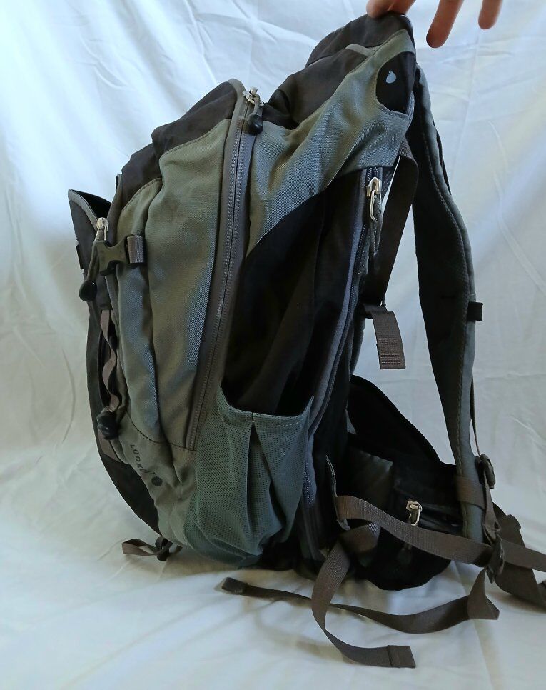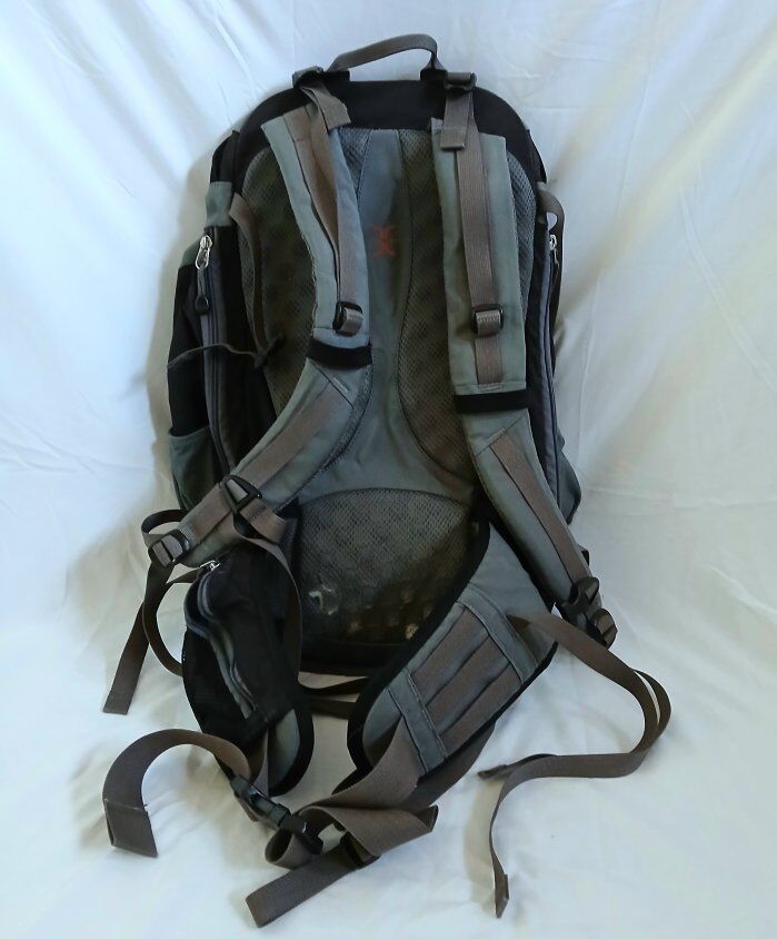 VenmoCamping or hiking backpack. Features many pockets and straps for getting your stuff how you want it. Rain poncho for the backpack (pictured). Waist straps. Some wear and tear on back padding (pictured). Zippers are occassionally a little stiff but still work fine. Spot to loop a water straw through (like a camelback). $7. Cash or venmo. Check out my other listings!