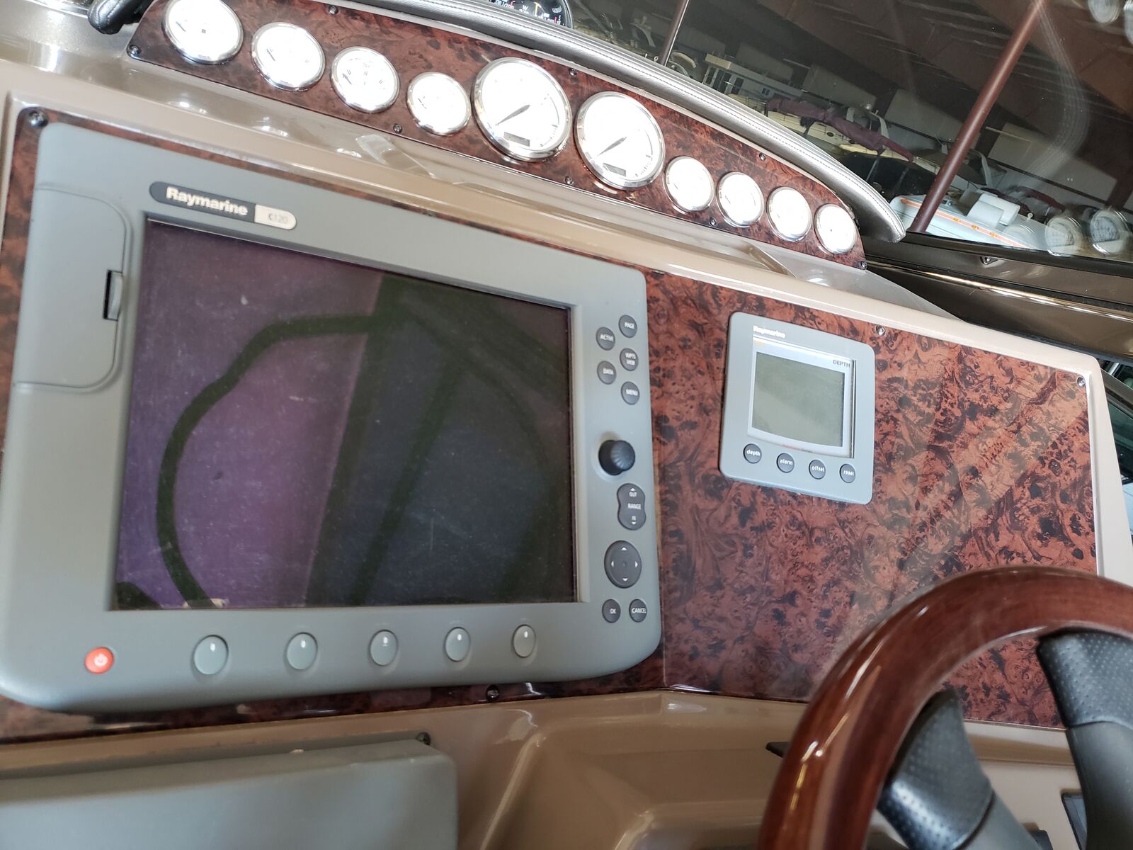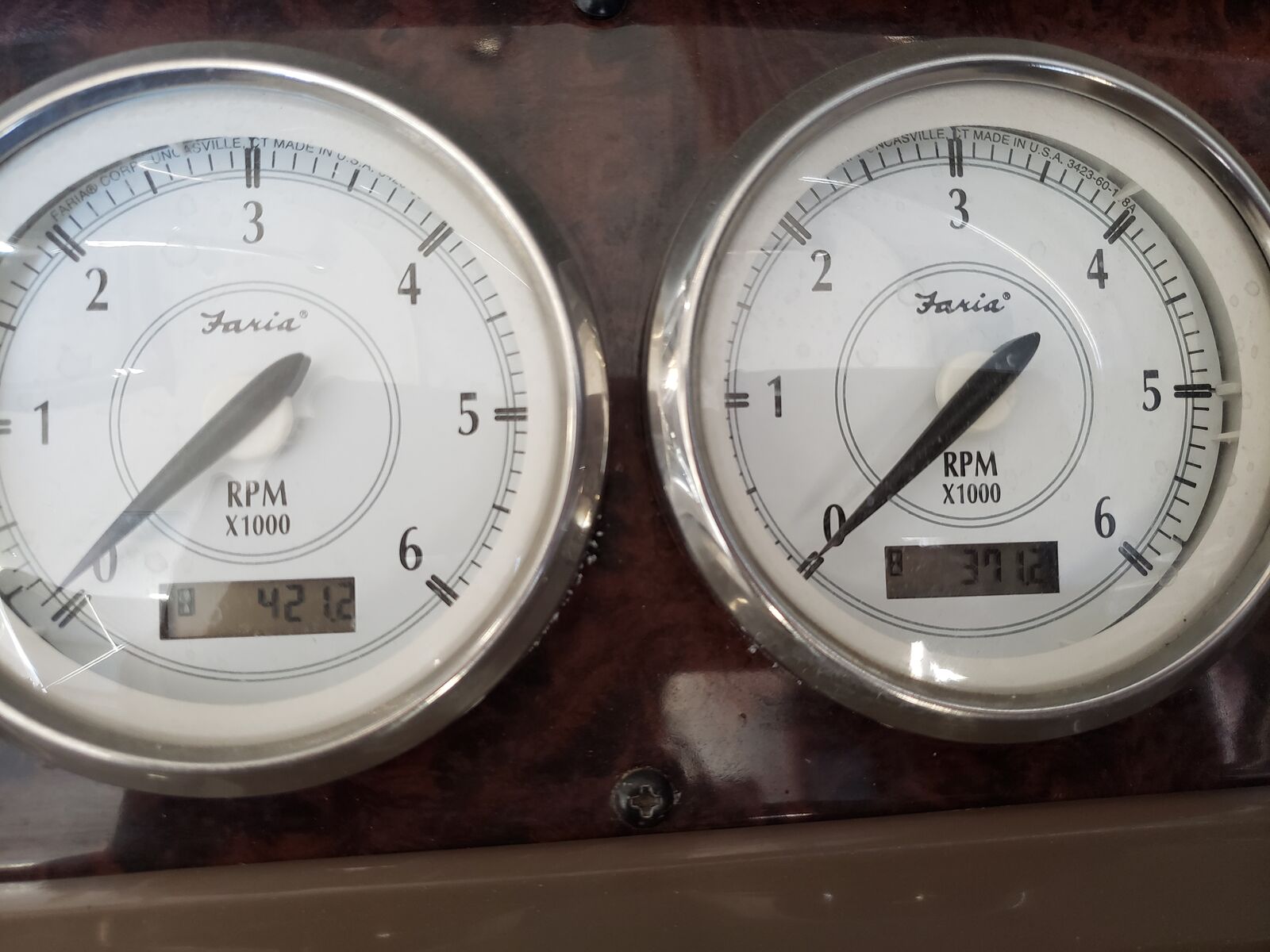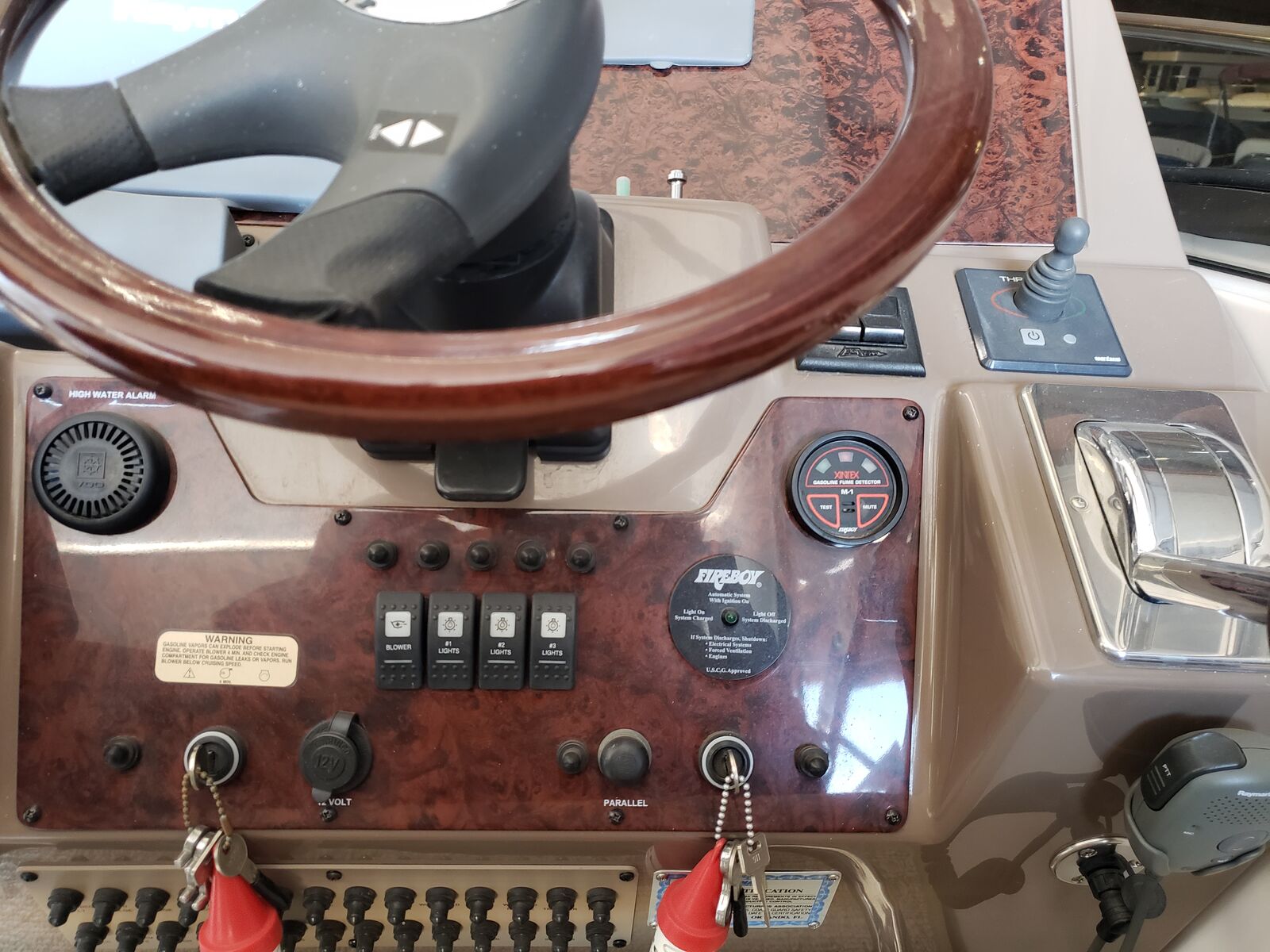 DUAL SPLIT CHROME THROTTLE & SHIFT CONTROLS. VETUS JOYSTICK BOW THRUSTER. TRIM TABS. RAYMARINE C-SERIES GPS CHARTPLOTTER/RADAR/FISHFINDER. VHF RADIO. ELECTRIC HATCH LIFT.